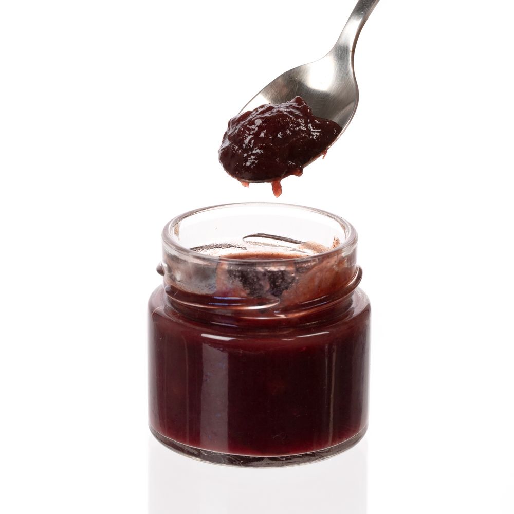 Состав: брусника, клюква, вино сухое красное, апельсин, яблоко красное, сахар, мед, розелла, пектин, соль, розмарин, ягоды можжевельника, перец черный.