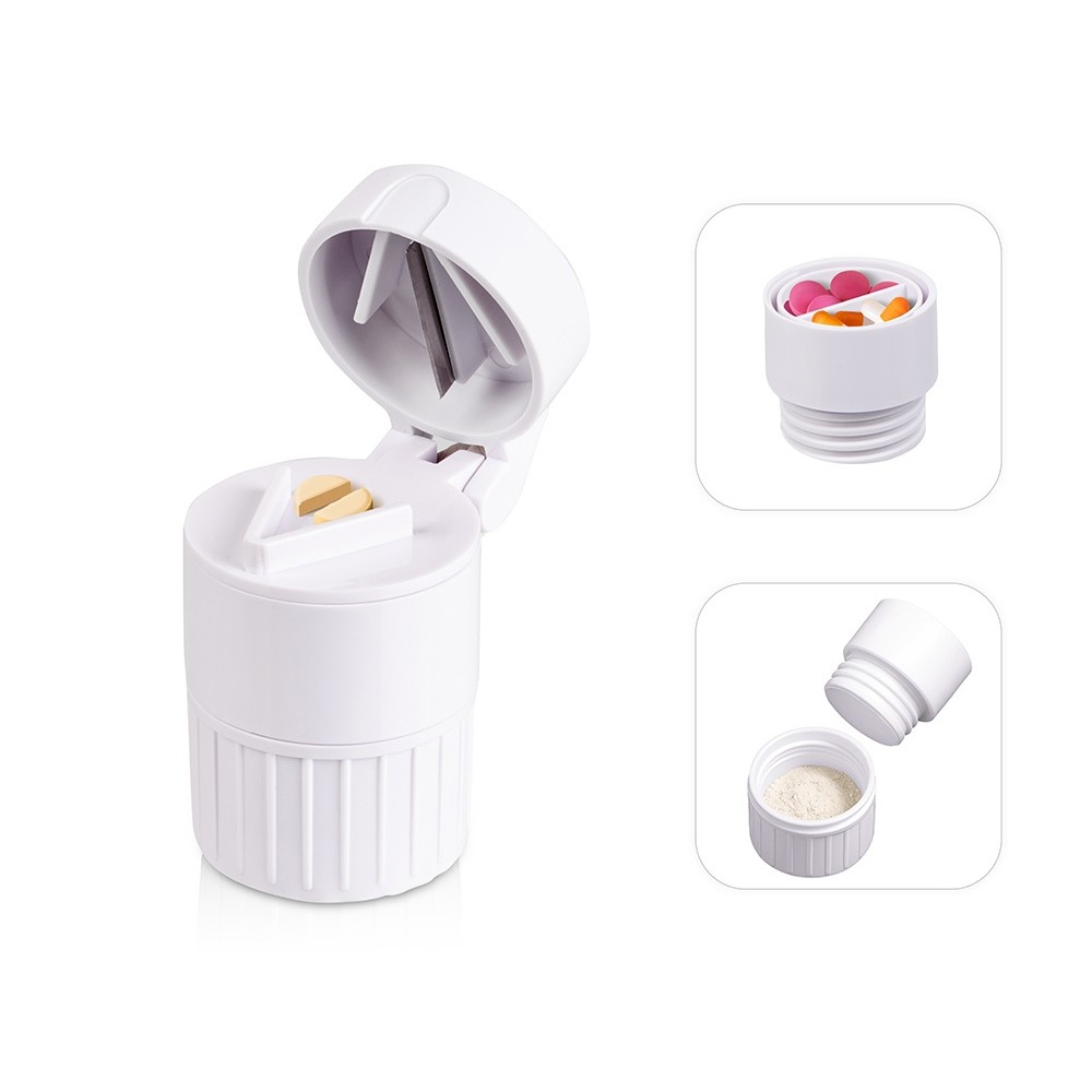 Таблетница сочетает в себе три полезные функции сразу: 1. Резак. Под крышкой установлен специальный резак, который поможет быстро и аккуратно поделить таблетку на 2, 3 и большее количество частей, чтобы точно соблюсти дозировку лекарств; 2. Измельчитель. Незаменим, если необходимо превратить таблетки в порошок; 3. Хранение. Небольшое отделение посередине, в котором можно хранить несколько маленьких таблеток. - резак и измельчитель для таблеток; - отделение для хранения лекарств; - компактный размер.