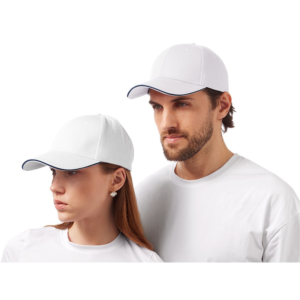 Бейсболка из очень плотного хлопкового твила. Бейсболка снабжена удобной металлической застежкой для более тщательной регулировки. Контрастный кант по козырьку и заднему хлястику.