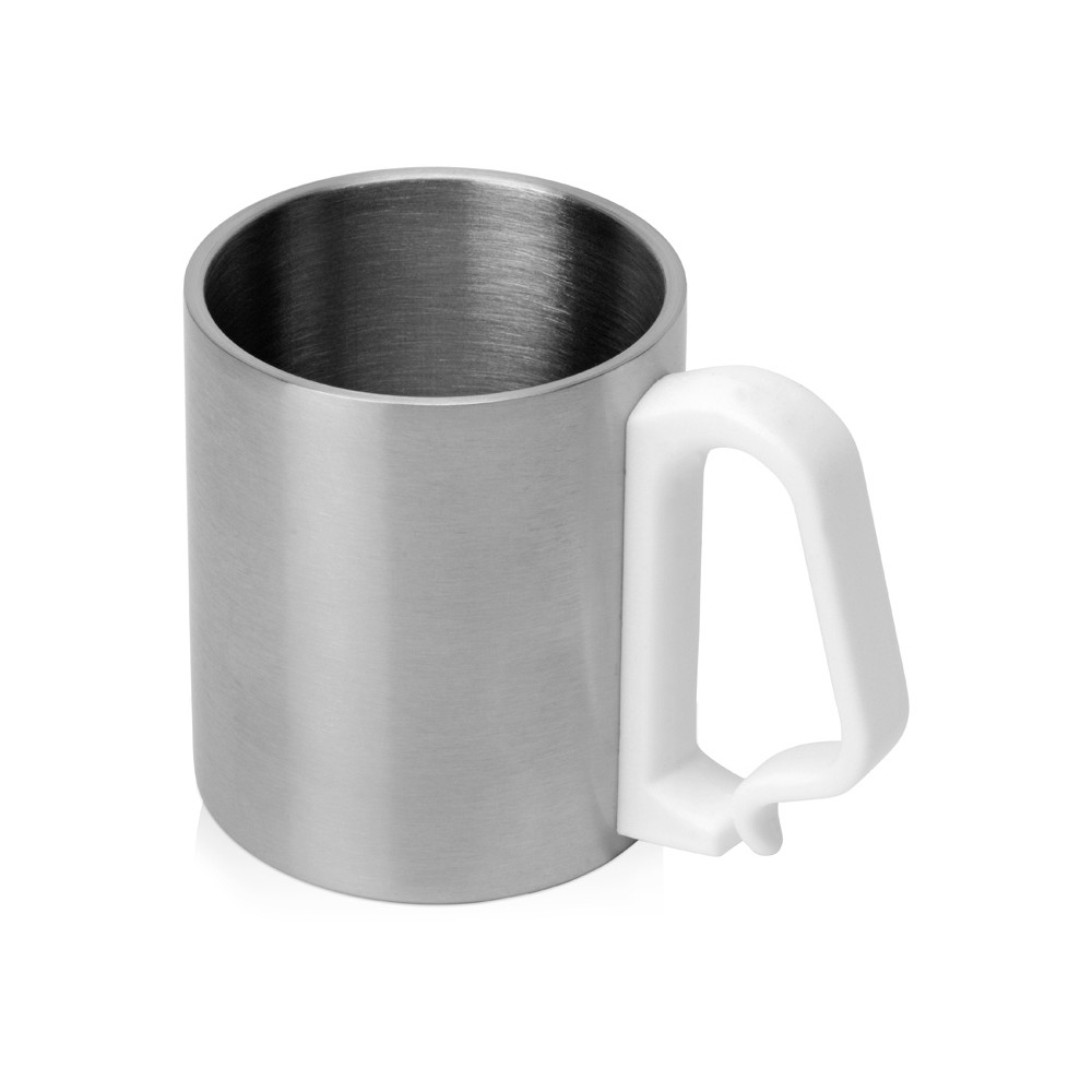Стальная кружка Climber с пластиковой ручкой, серебристый/белый