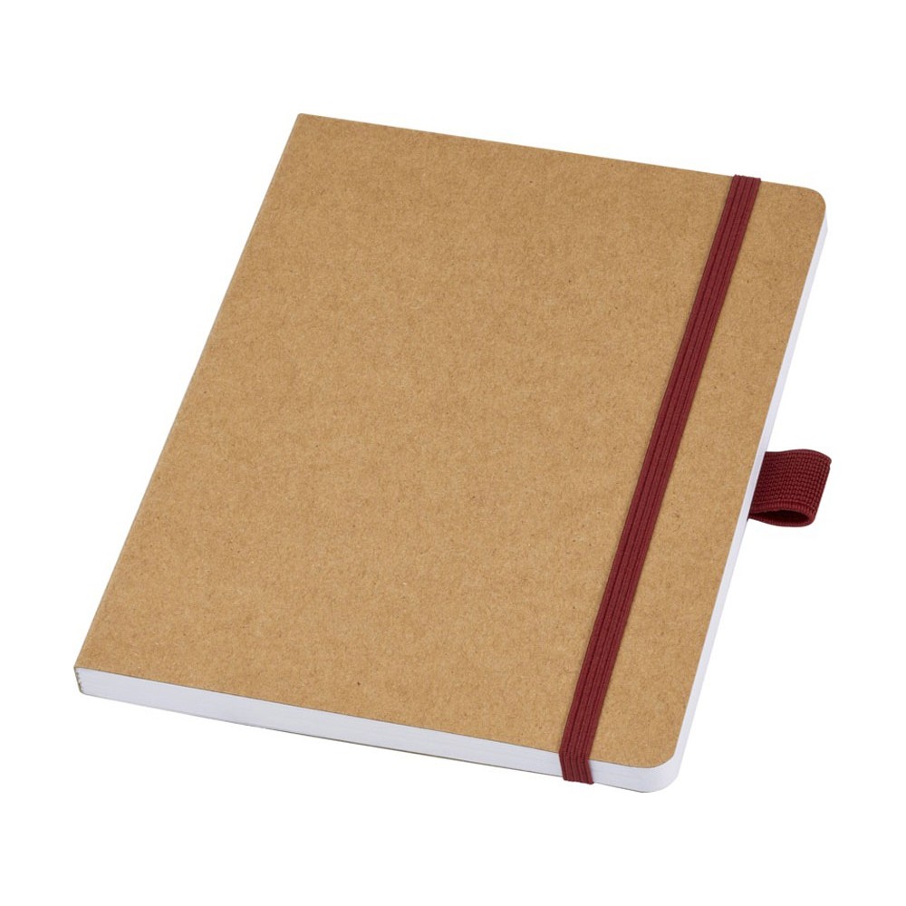 Блокнот формата из линованной переработанной бумаги (70 г/м²) с закругленными углами, цветной резинкой и петлей для ручки, соответствующей 107384 цветам ручки.