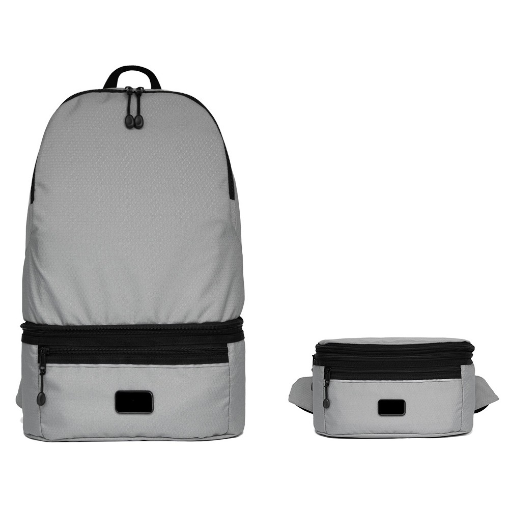 Легкий рюкзак и поясная сумка 2-в-1 станет отличным корпоративным подарком. Рюкзак с таким функционалом удобен для поездок, походов на работу или в спортзал. Поясная сумка, прикрепленная к рюкзаку с помощью молнии, добавляет 6 л к общему объему рюкзака, делая его более вместительным. Спереди светоотражающий элемент для дополнительной защиты в темное время суток. Лямки регулируются по длине. Водостойкий материал. Комплектуется съемным металлическим шильдом под нанесение вашего логотипа.