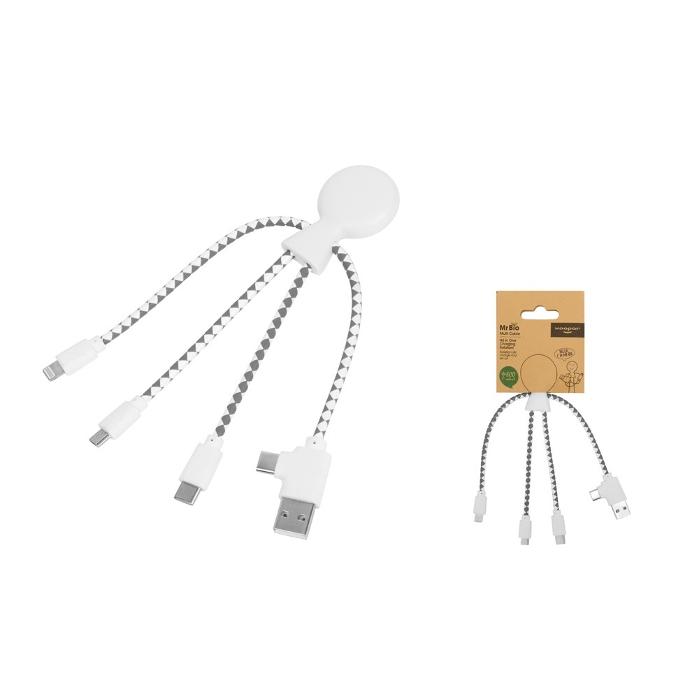 Mr. Bio - это зарядный кабель с несколькими адаптерами, который может зарядить практически любой современный гаджет. Кабель сделан с применением биоразлагаемых натуральных материалов, что является отличной альтернативой традиционным кабелям. Переходите на Mr. Bio для сокращения глобальных кабельных отходов!