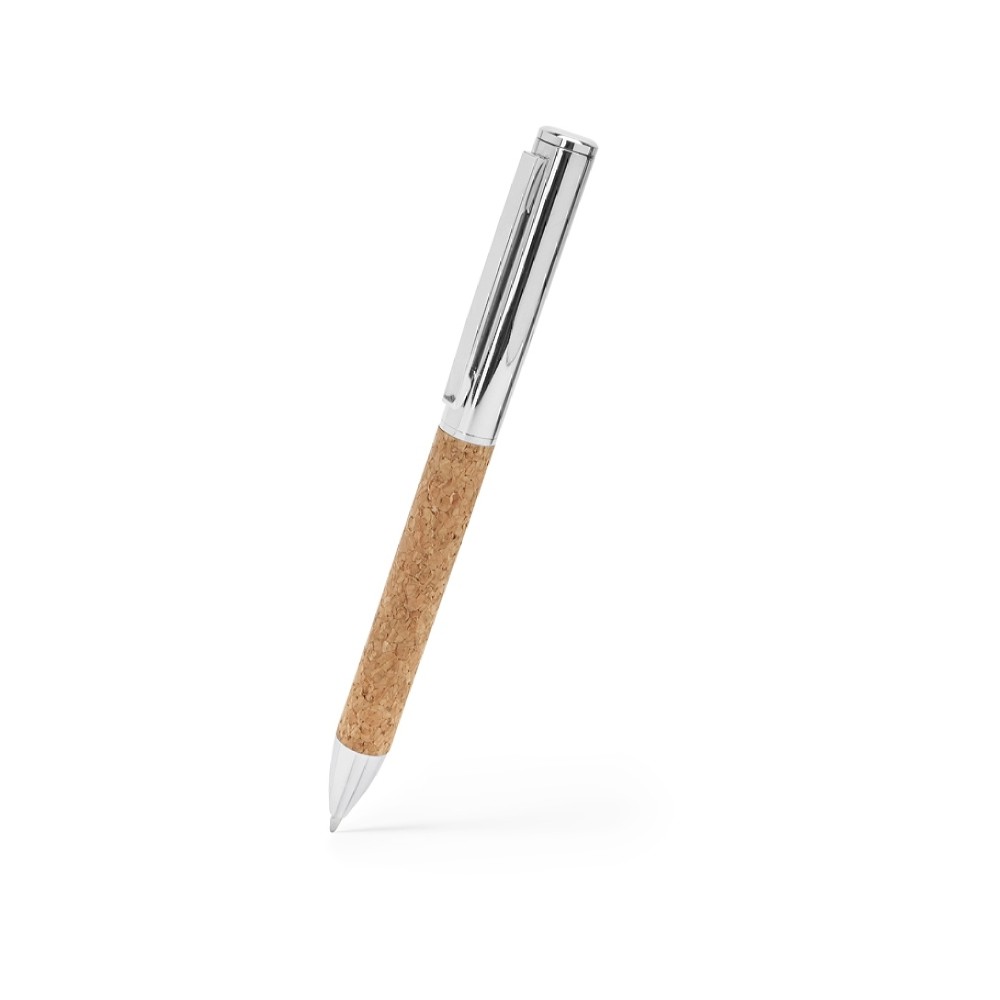 Элегантная шариковая ручка из пробки и металла с хромированным покрытием. Синие чернила.