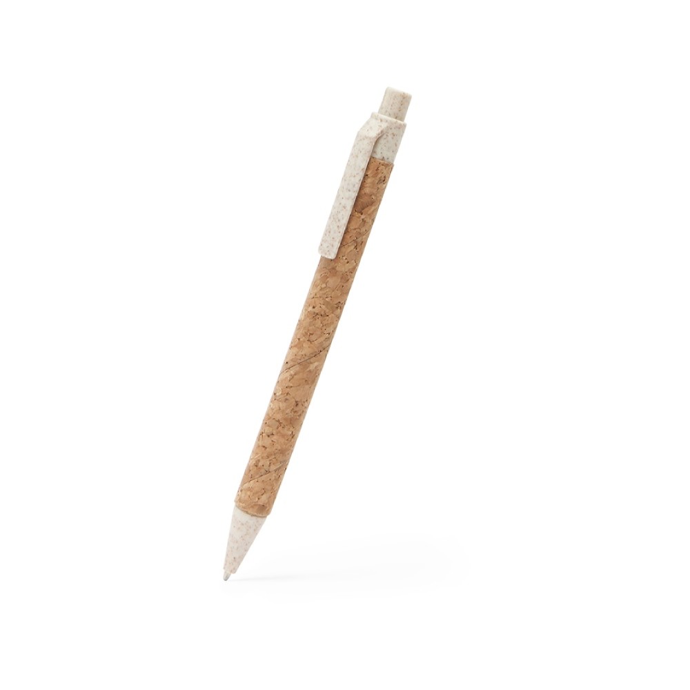 Ручка Eco-line с пробковым корпусом. Наконечник, кнопка и клип из пшеничного волокна. Синие чернила.