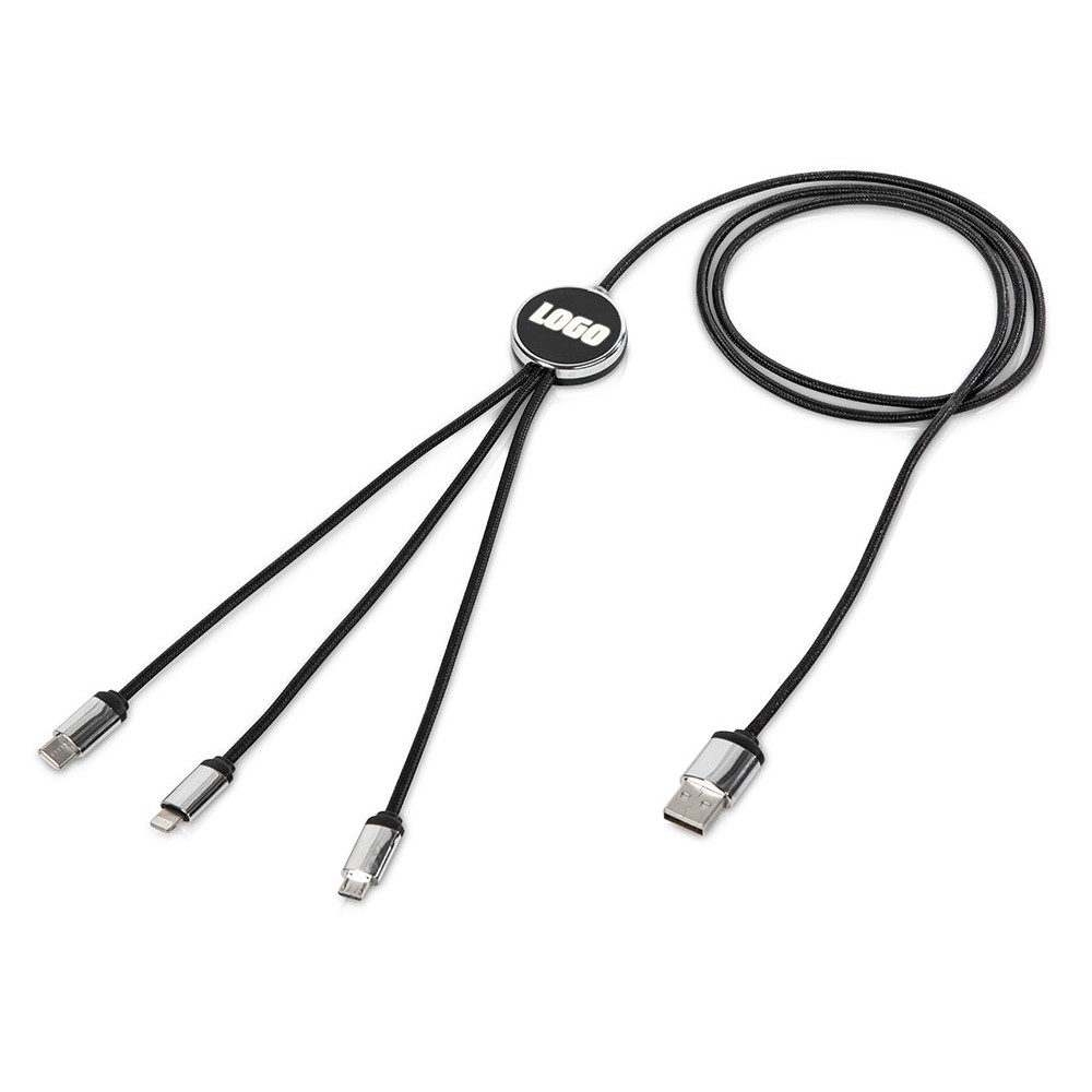 Кабель 3-в-1 с подсветкой логотипа Ion, черный