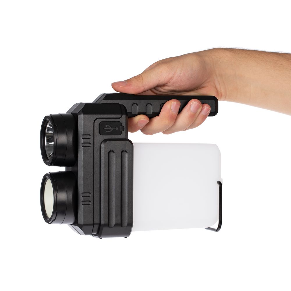 Удобный многофункциональный инструмент, который одинаково хорошо работает как в формате яркого ручного фонаря (с удобной ручкой!), так и в качестве подвесной лампы. Несколько режимов освещения позволяют подобрать оптимальный вариант для самых разных ситуаций дома, на природе или на даче.