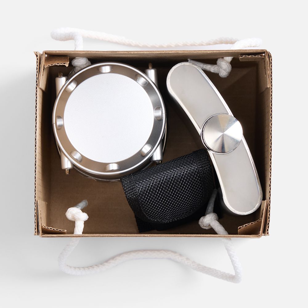 | Материал | мультитул - нержавеющая сталь; алюминий; фляжка - нержавеющая сталь, 304; фонарь - АБС-пластик; коробка - микрогофрокартон |