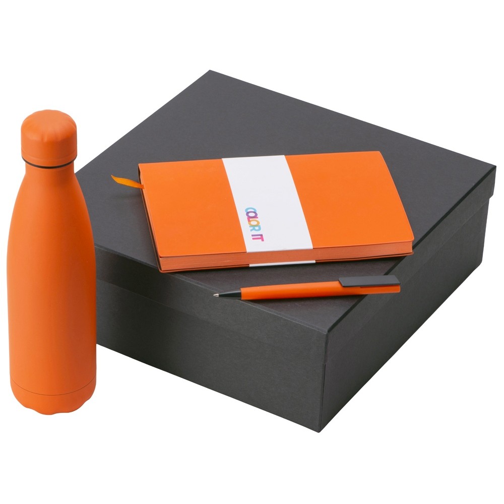 Подарочный набор c блокнотом C1, ручкой и термобутылкой, оранжевый