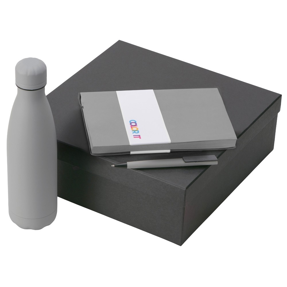 Подарочный набор c блокнотом C1, ручкой и термобутылкой, серый