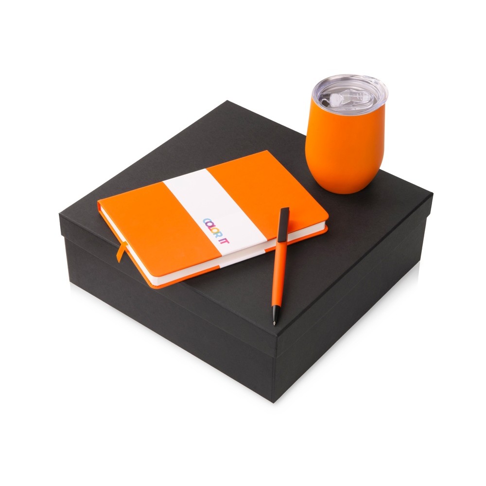 Подарочный набор c блокнотом C2, ручкой и термокружкой, оранжевый