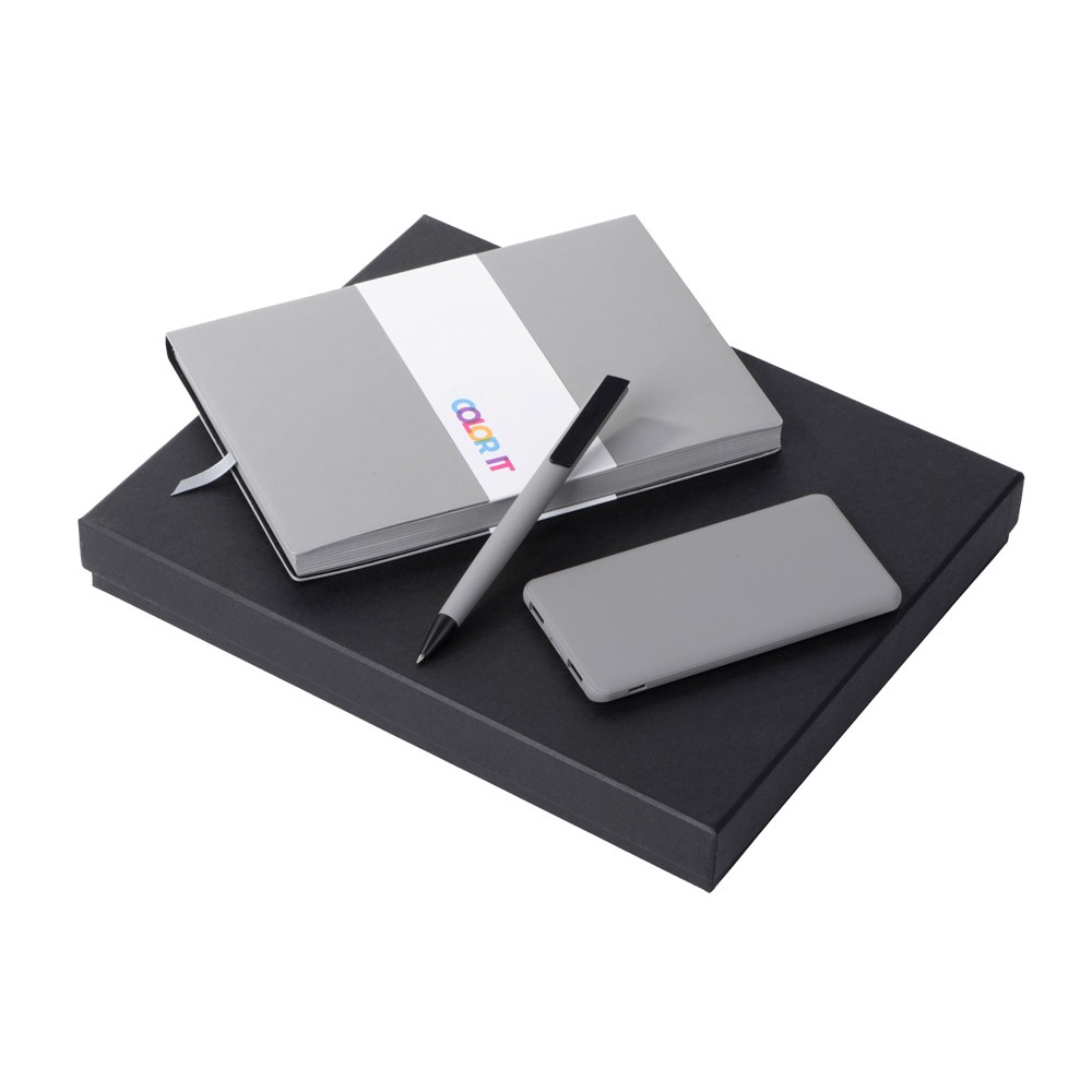 Подарочный набор c блокнотом С1, ручкой и повербанком 5000 mAh, серый