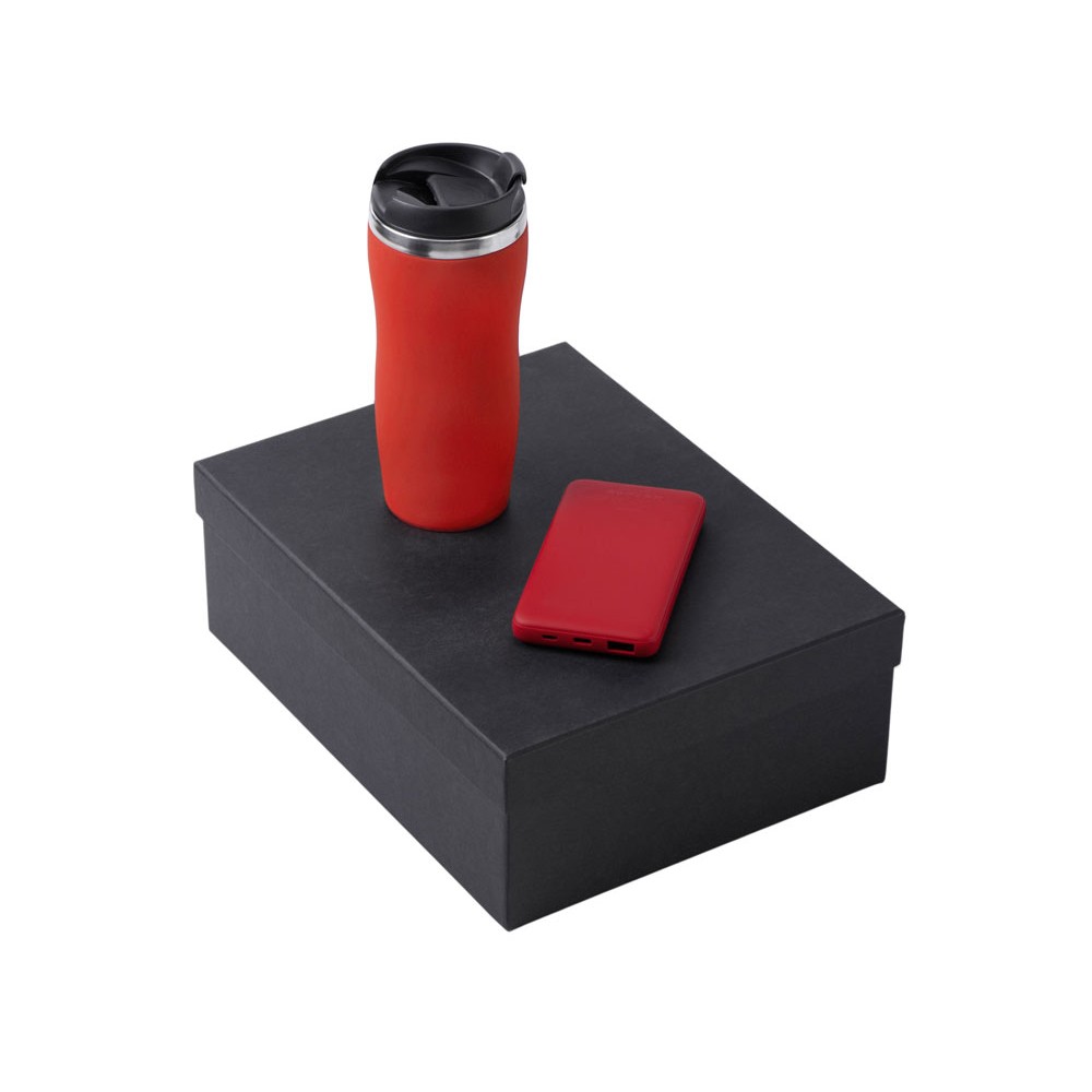 Подарочный набор c вакуумной термокружкой и повербанком С2, красный