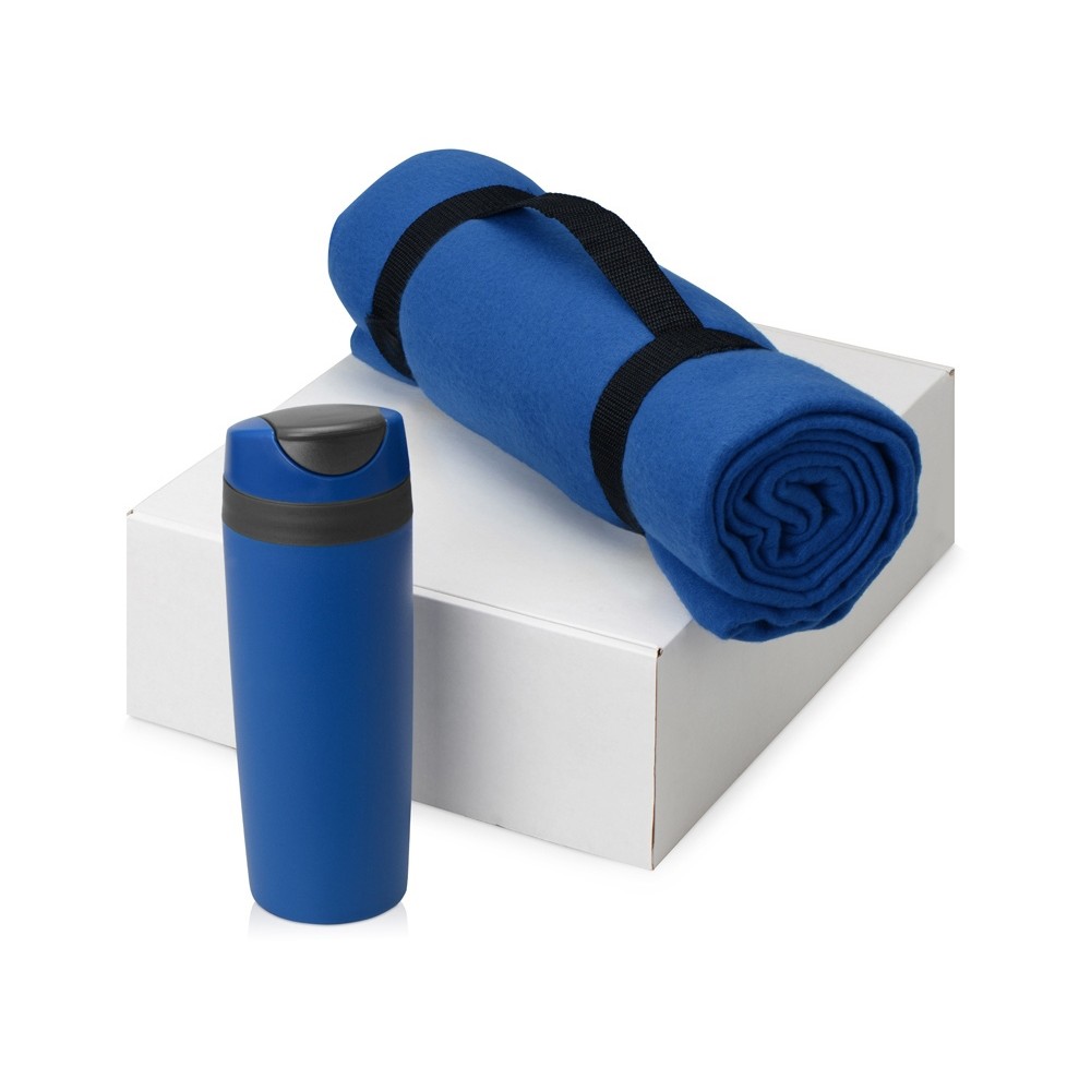 Подарочный набор Cozy с пледом и термокружкой, синий