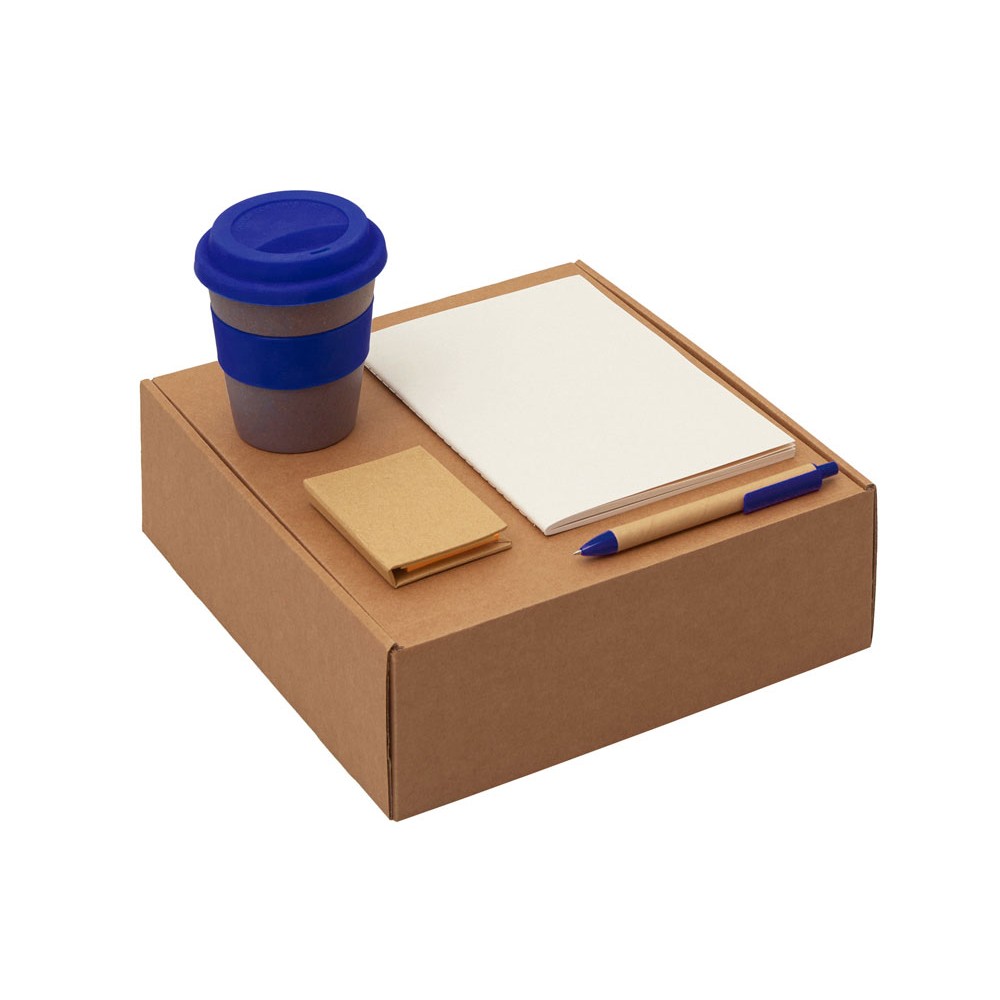 | Материал товара | блокнот- бумага из переработанных тетра-паков, ручка- картон, пластик, стакан- 50% бамбуковое волокно, 50% полипропилен, коробка- картон |