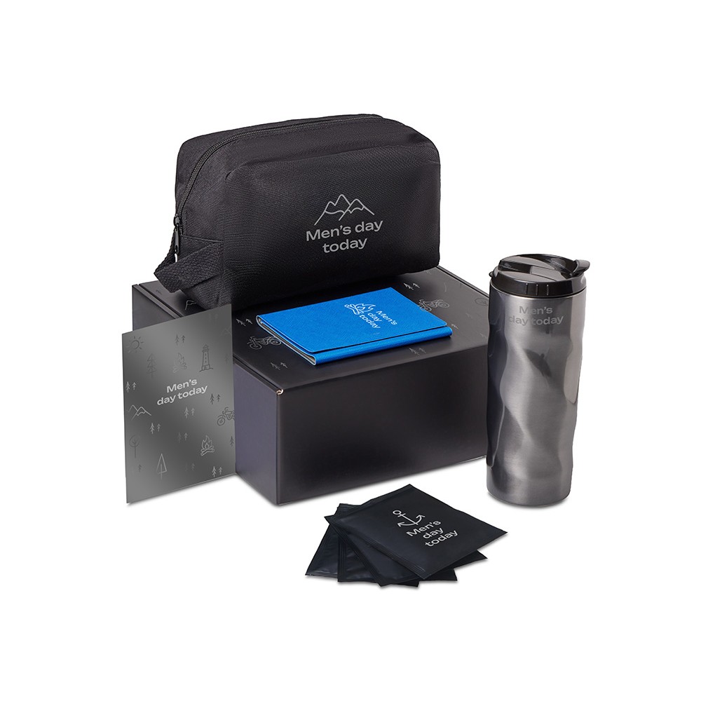 | Материал товара | термокружка - нержавеющая сталь, пластик; кофе в дрип пакете - пластик; обложка для паспорта - полиуретан; косметичка - переработанный оксфорд; мешок - нетканый материал (спанбонд) |