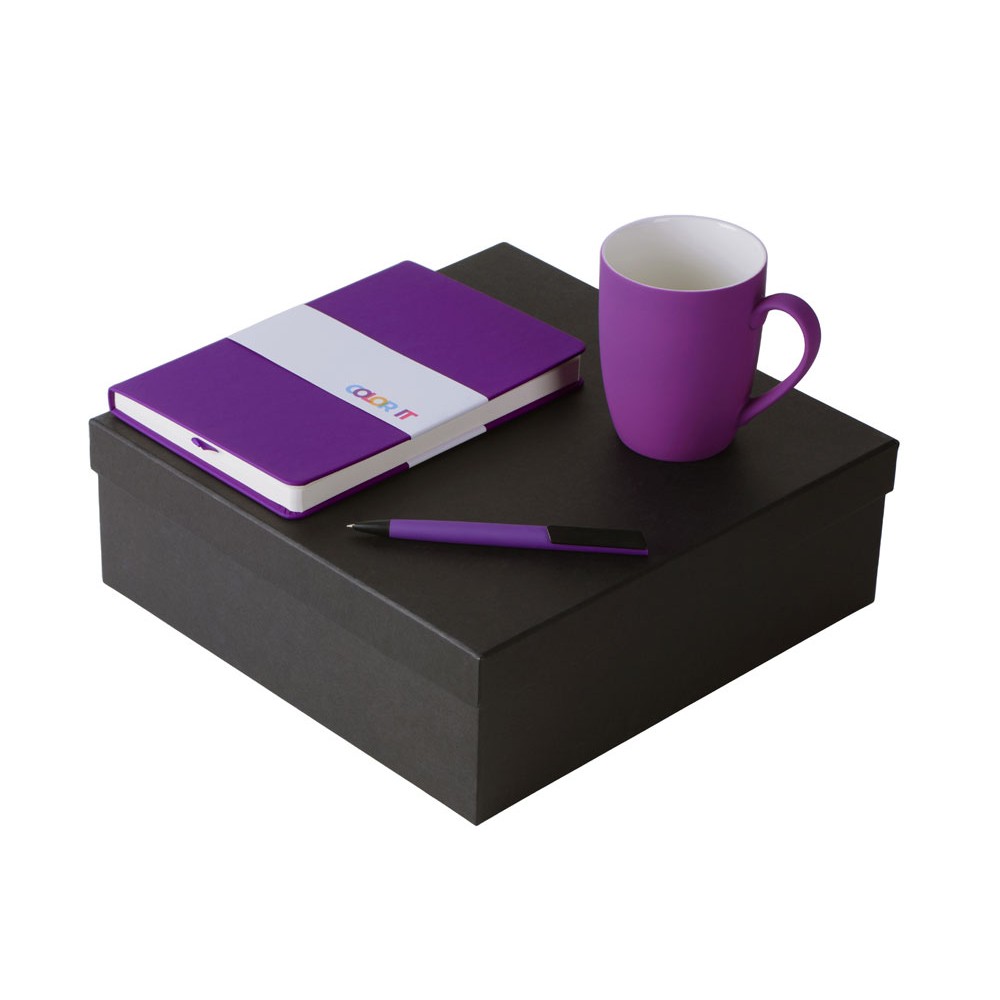 Подарочный набор с блокнотом С2, пластиковой ручкой и кружкой, фиолетовый