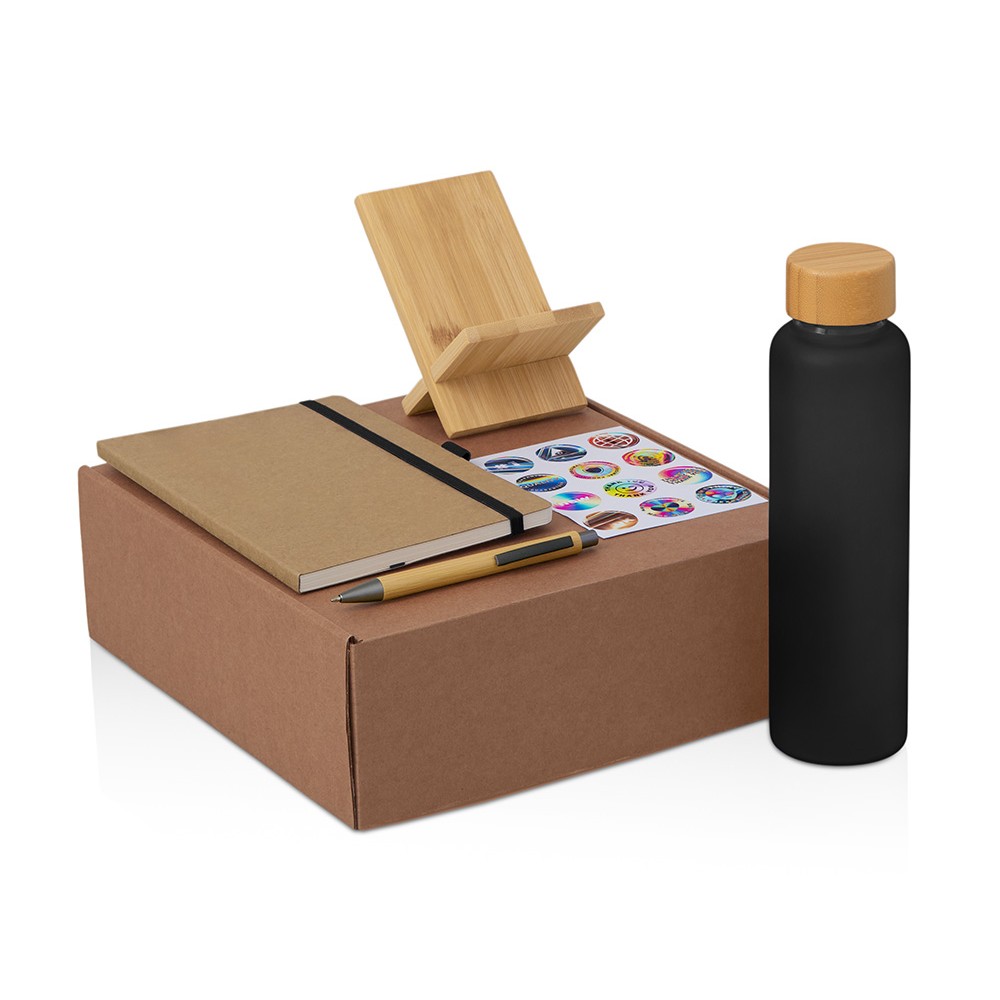 Подарочный набор с бутылкой для воды. блокнотом, ручкой и подставкой для телефона, черный