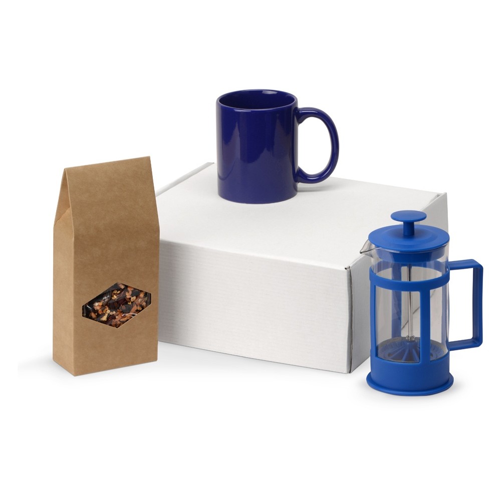 Подарочный набор с чаем, кружкой и френч-прессом Чаепитие, синий