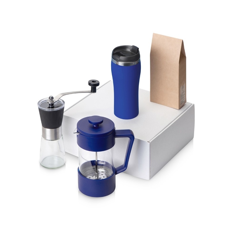 Подарочный набор с кофе, кружкой и френч-прессом Бодрое утро 2.0, синий