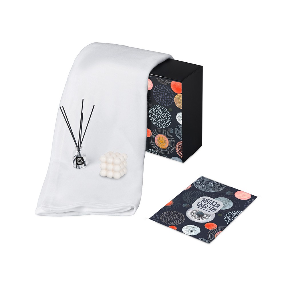 Подарочный набор с пледом, свечой и диффузором, белый