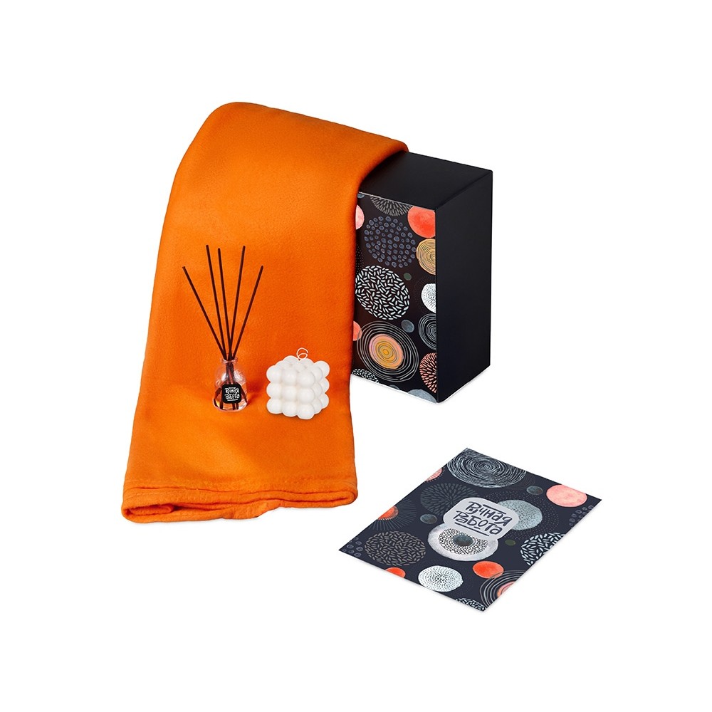 Подарочный набор с пледом, свечой и диффузором, оранжевый