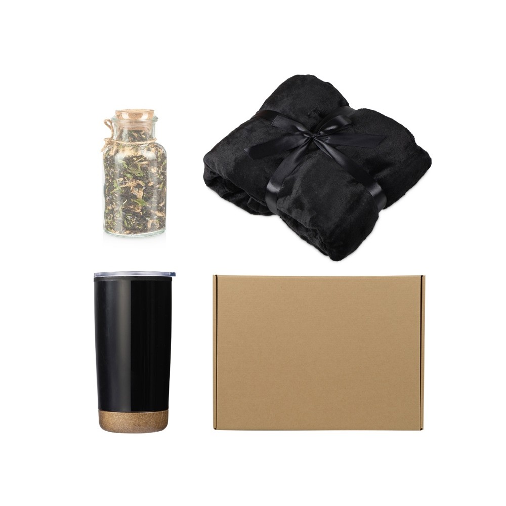 Подарочный набор с пледом, термокружкой и чаем, черный