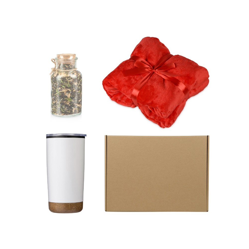 Подарочный набор с пледом, термокружкой и чаем, красный