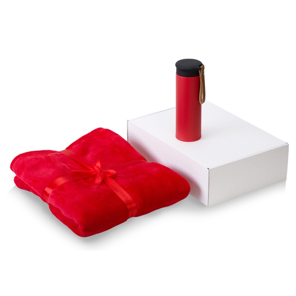 Подарочный набор с пледом, термосом Cozy hygge 2.0, красный