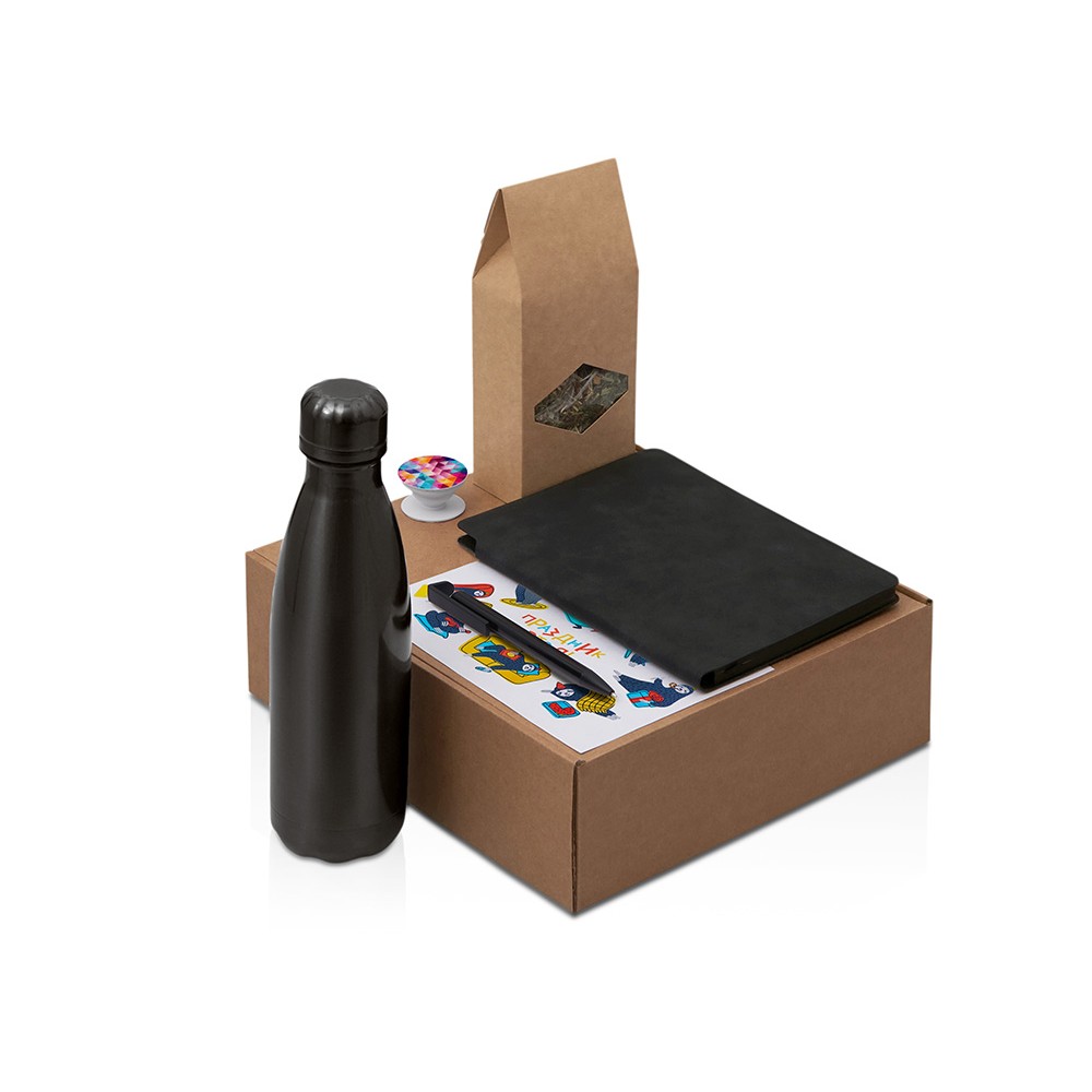 Подарочный набор с термобутылкой, блокнотом, ручкой и чаем, черный