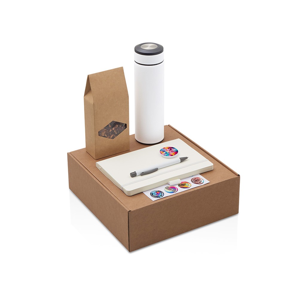 Подарочный набор с термосом, блокнотом, ручкой и чаем, белый