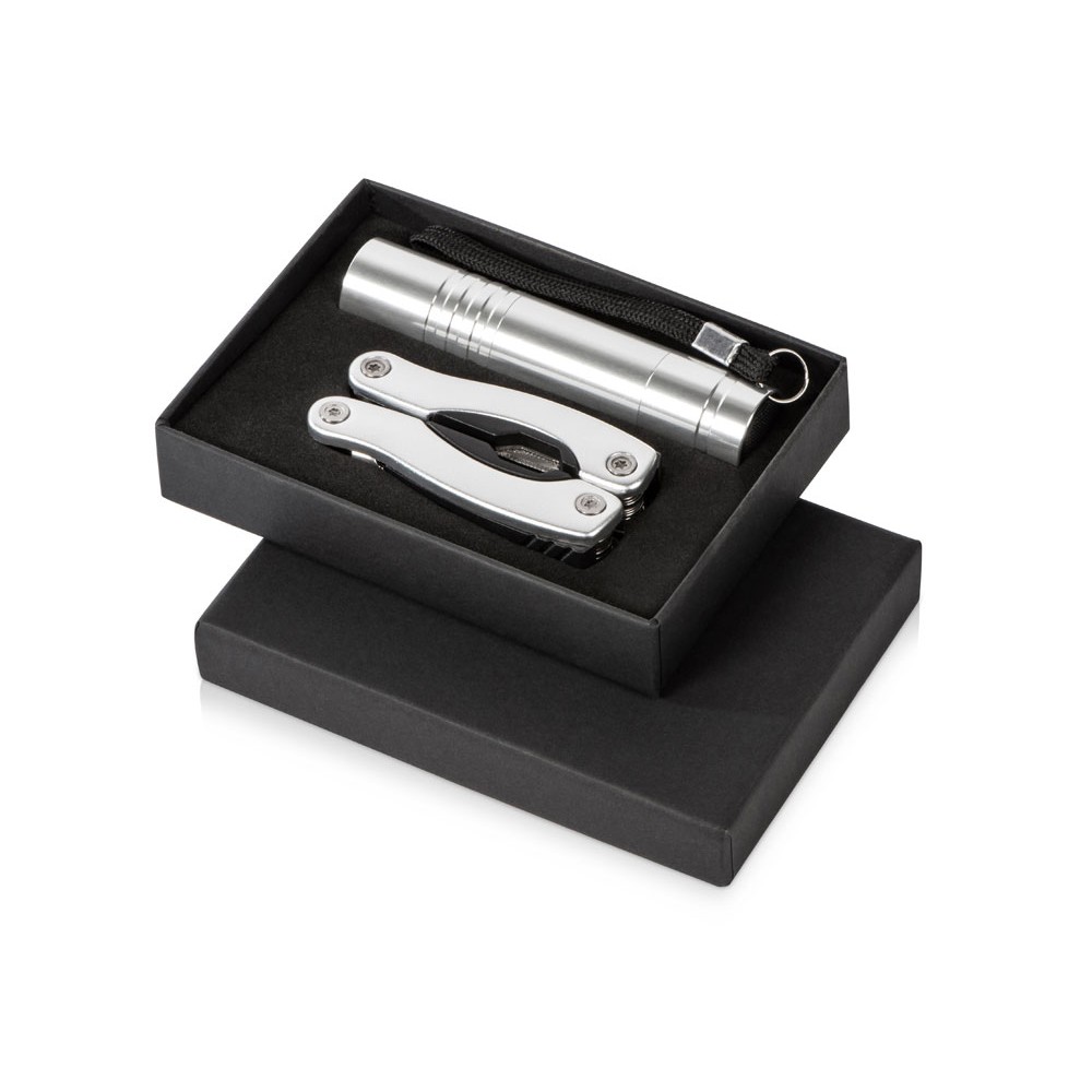 Подарочный набор Scout с многофункциональным ножом и фонариком, серебристый (P)