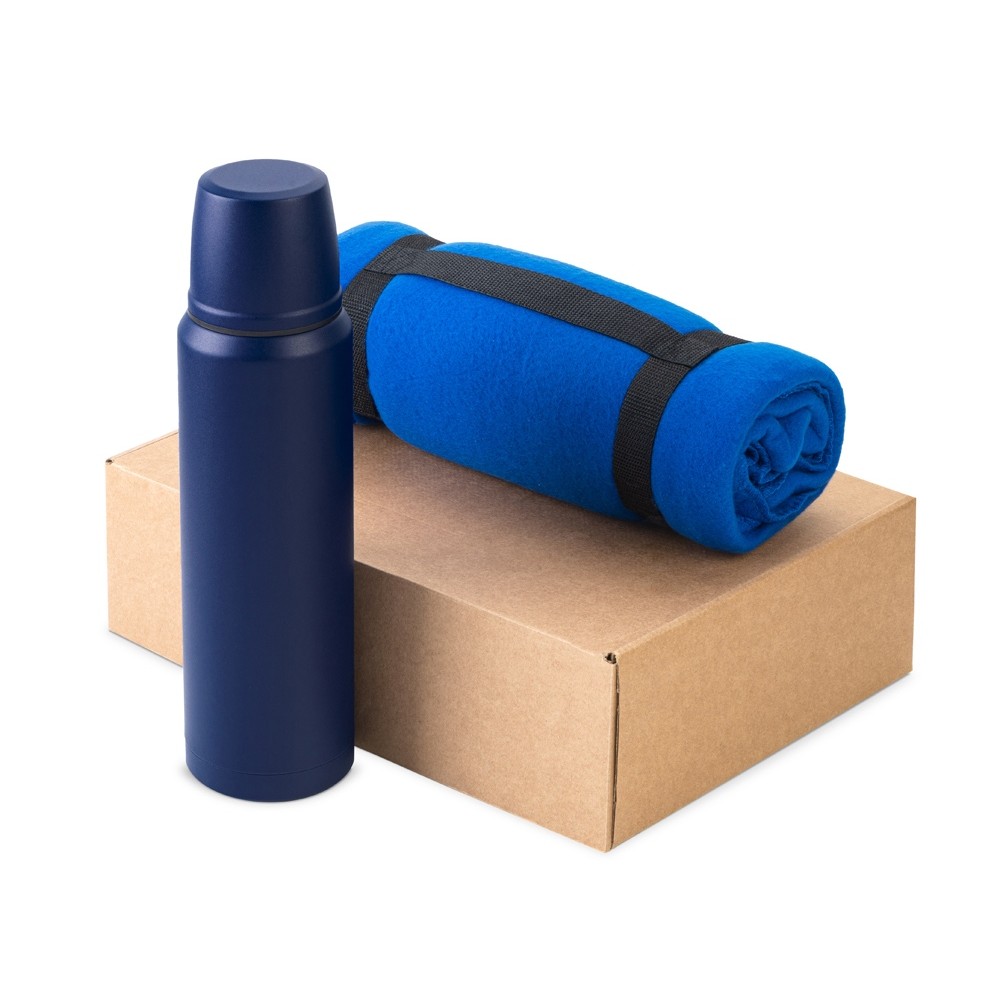 Подарочный набор с термосом и пледом Serenity, синий