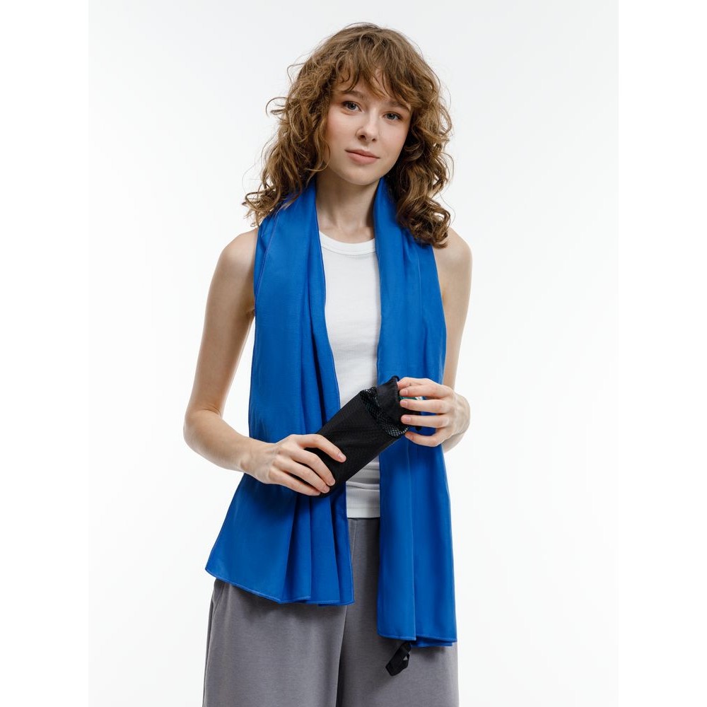 Полотенце упаковано в сумку-чехол из прочной ткани с плетением рипстоп и дышащим сетчатым верхом. Чехол также можно использовать в качестве несессера для косметических и купальных принадлежностей.