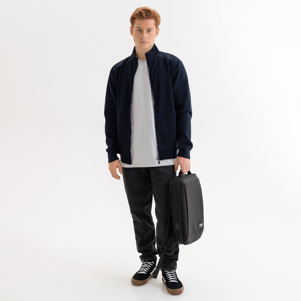 Ноутбук разместится в глубоком кармане внутри основного отделения рюкзака, также предусмотрены два небольших кармашка для мелочей. Основное отделение закрывается на двойную молнию. С лицевой стороны вместительный карман на молнии. На спинке широкая багажная лента для закрепления на ручке чемодана и потайной карман на молнии. Лямки — широкие, регулируемые по длине. Они хорошо облегают плечи и равномерно распределяют нагрузку.