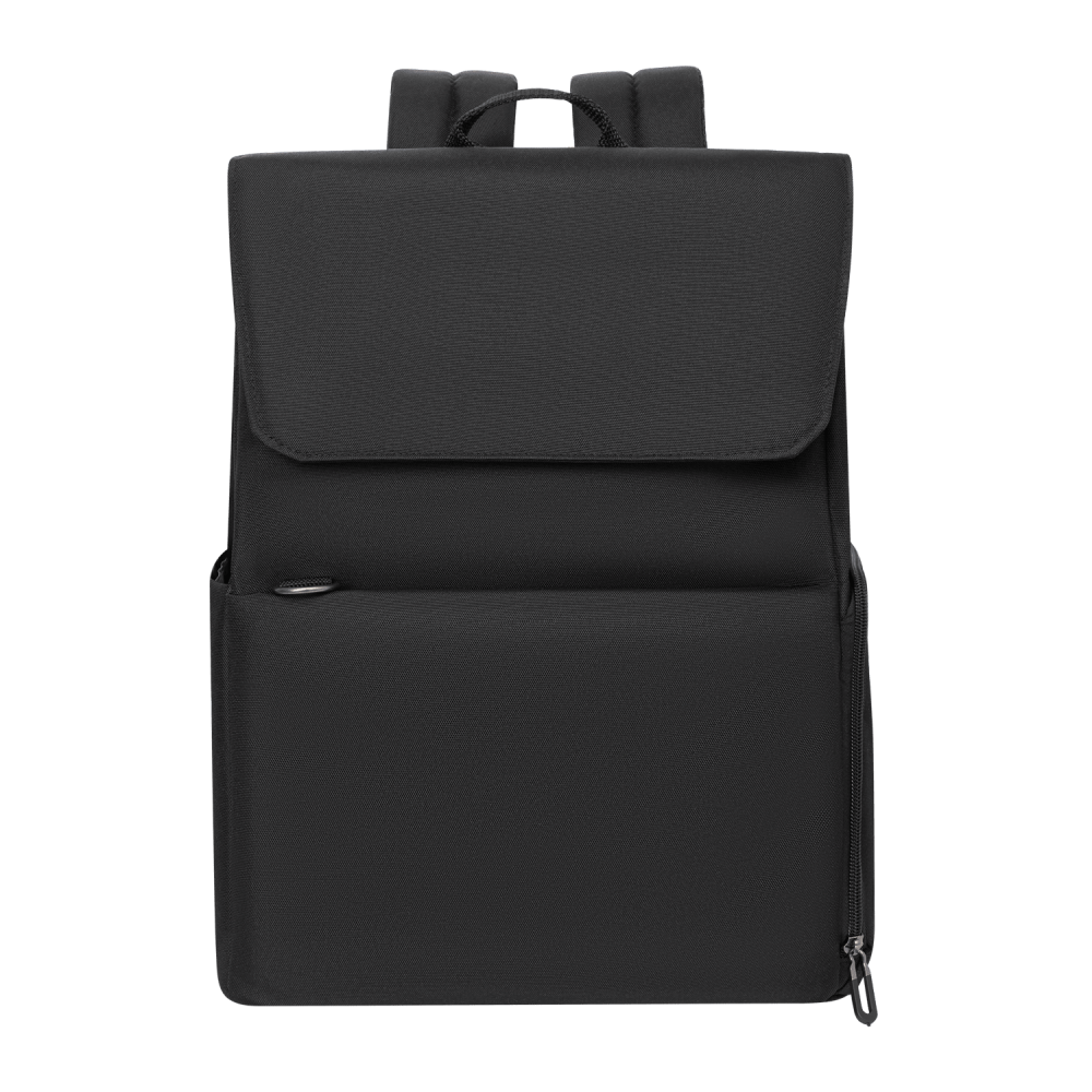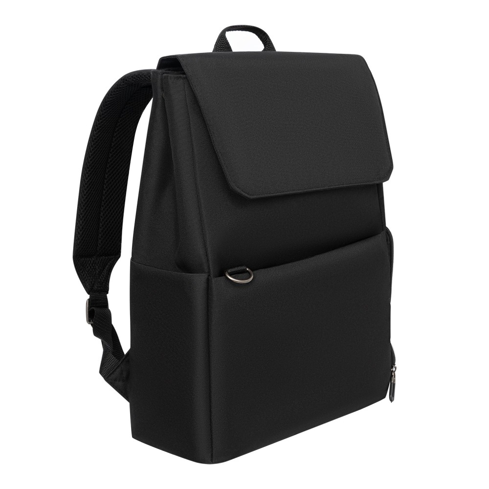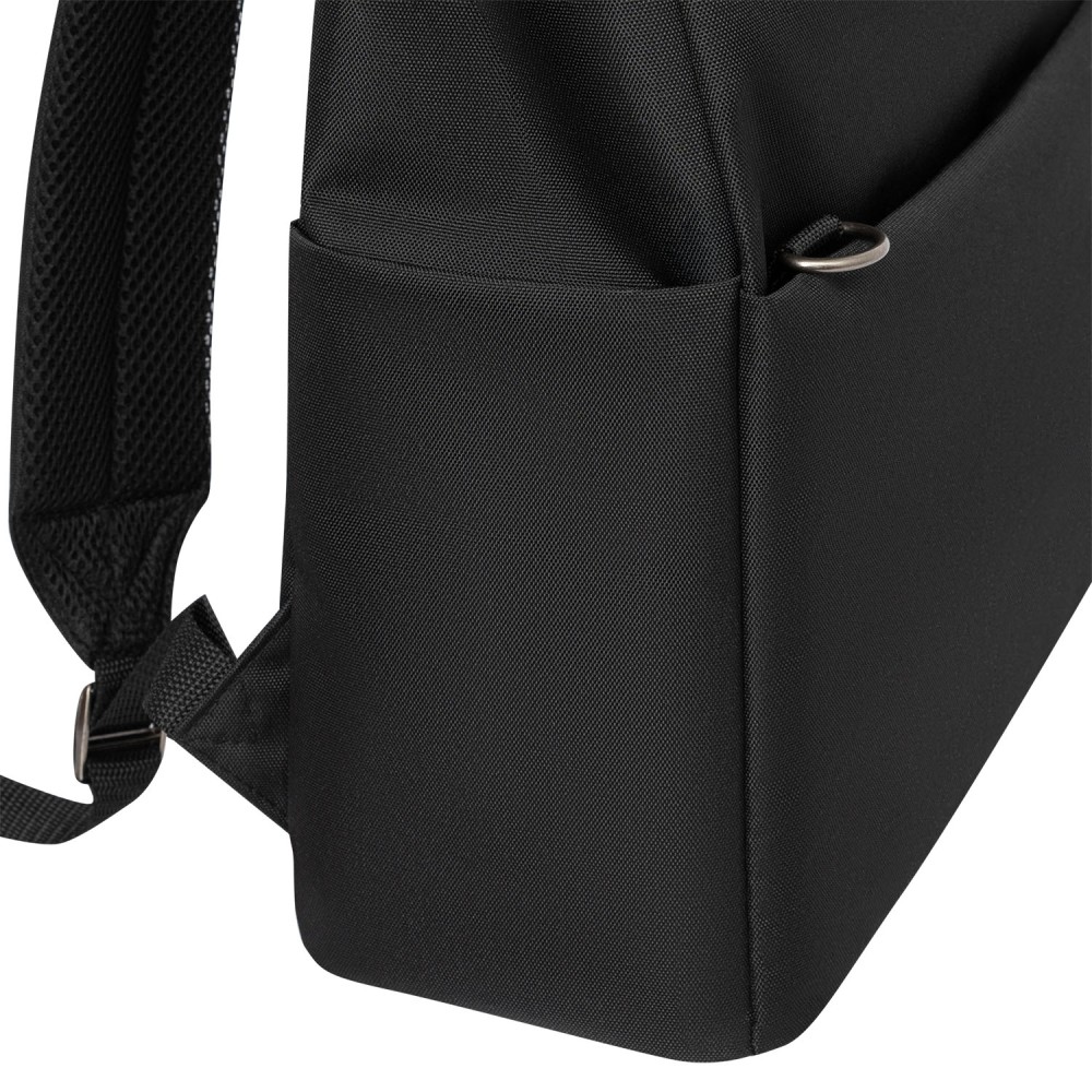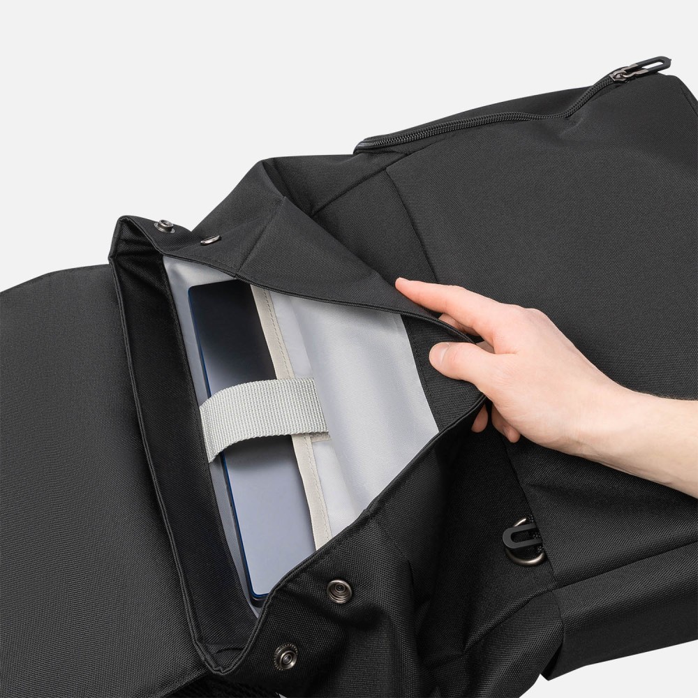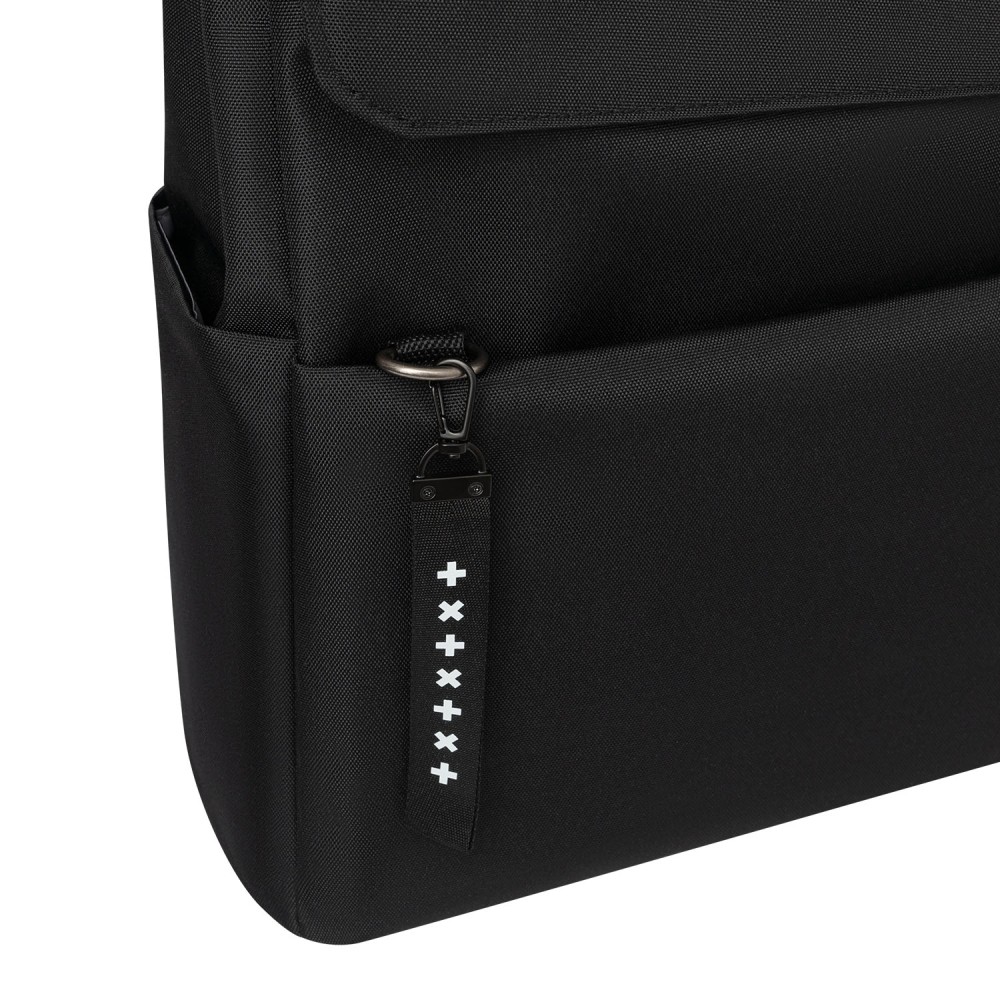 Основное отделение вмещает ноутбук до 15,6 дюймов в уплотненном кармане с фиксирующим ремнем на липучке. Внутри основного отделения есть карман для фиксации пластиковой бутылки или небольшого термоса. Боковые карманы разного типа — один объемный на молнии, второй плоский — позволяют удобно разместить все необходимые вещи.