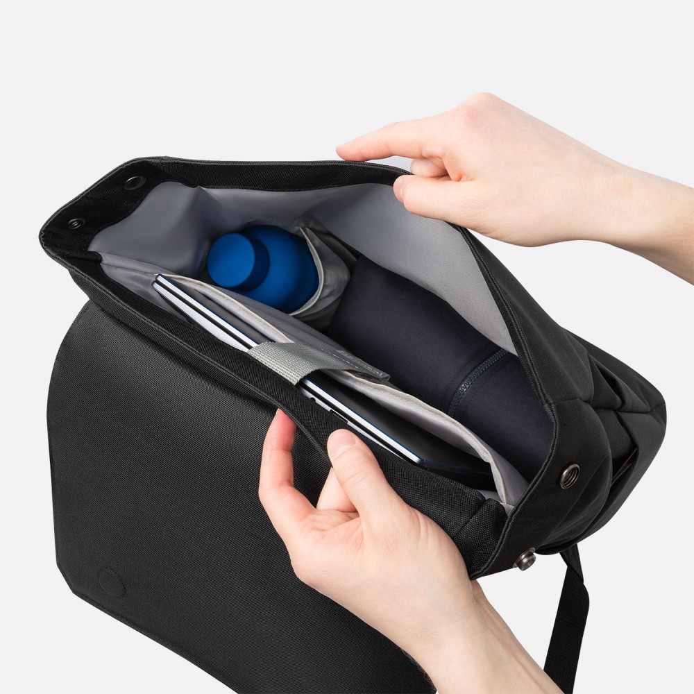 Кнопки по бокам основного отделения помогают регулировать объем. Багажная лента, мягкие плечевые ремни с дышащей подкладкой и карабины внутри кармана и снаружи делают Marco еще более функциональным и удобным для повседневного использования.