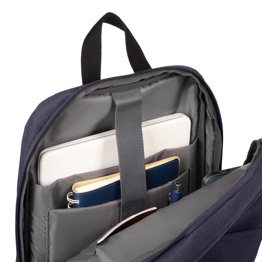 Карманы для ноутбука с диагональю до 15,6 дюймов и планшета оснащены мягкими вставками для их защиты и лентой для надежной фиксации в пути.