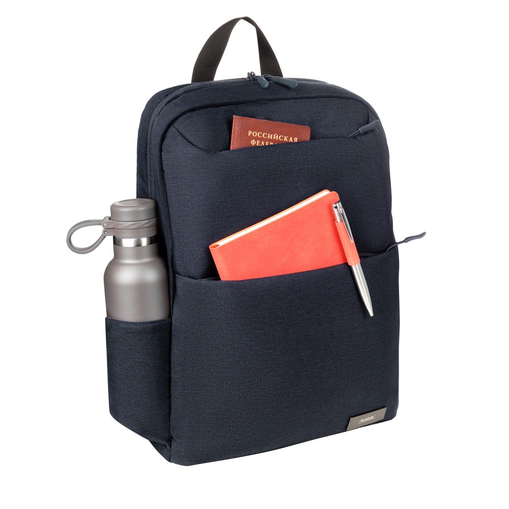 Компактный городской рюкзак Forst. С внешней стороны рюкзака размещены два кармана на молнии: один небольшой, который можно использовать для телефона, ключей, проездных карточек и других мелочей, другой – вместительный, для более крупных предметов.