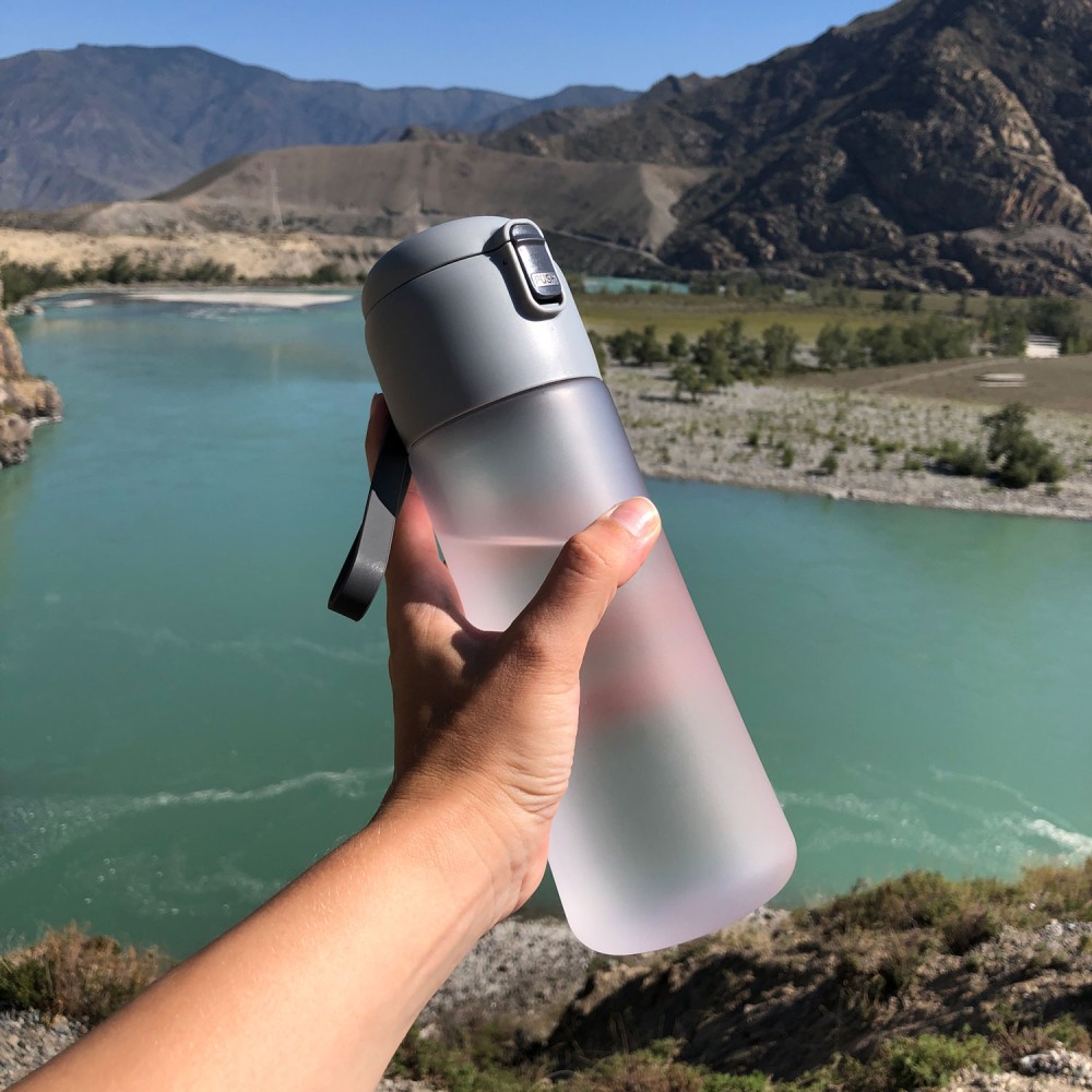 Полупрозрачное матовое покрытие бутылки позволяет видеть сколько воды осталось в бутылке, а также приятно на ощупь.