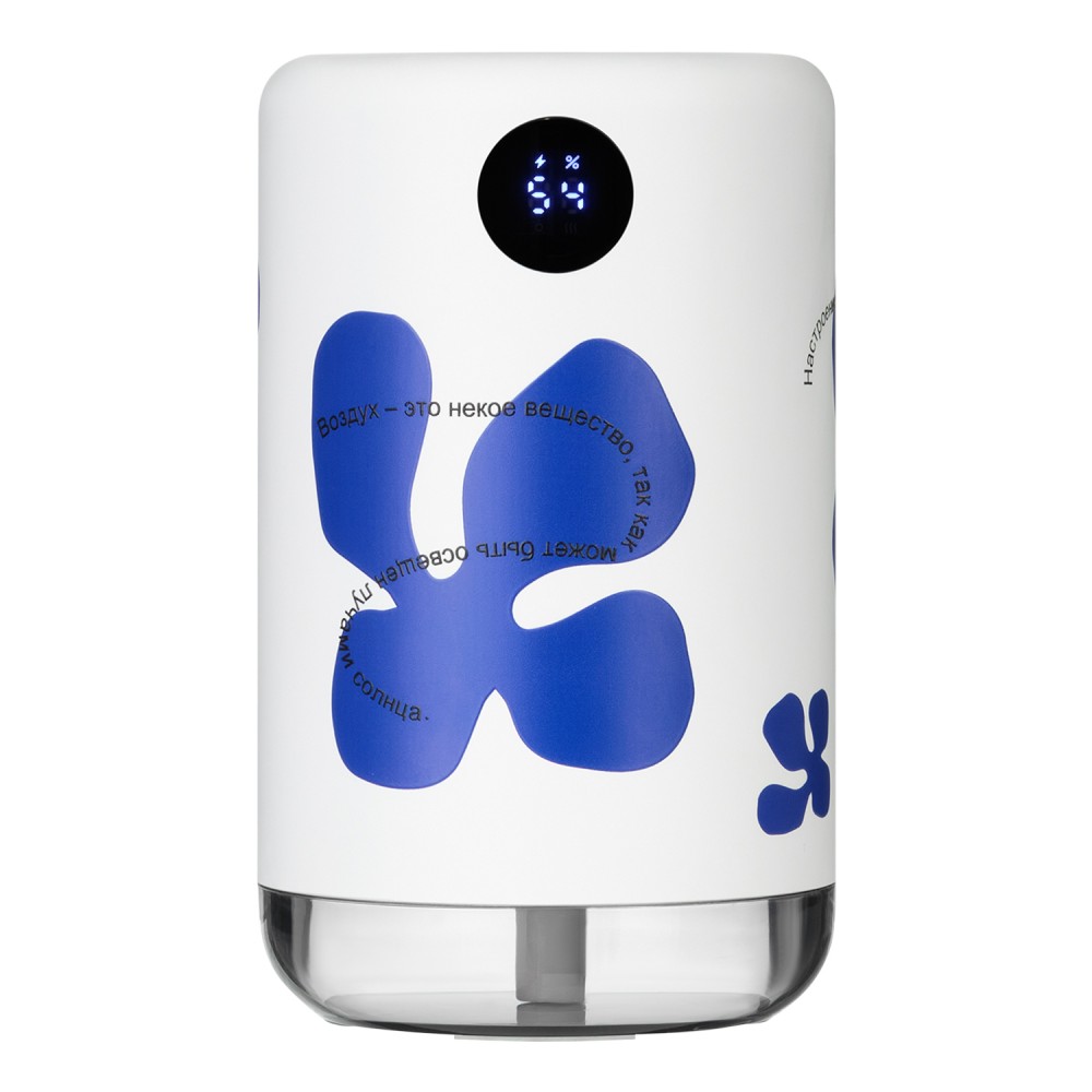 Портативный увлажнитель воздуха со встроенным аккумулятором 2000 mAh и функцией LED-подсветки белого цвета. Технология нано-распыления эффективно снижает сухость воздуха и электронное излучение, что устраняет статическое электричество. Специальное покрытие корпуса OIL PAINT обеспечивает лучшие визуальные и тактильные характеристики пластика. Есть цифровой индикатор заряда батареи. Объем резервуара воды – 500 мл.