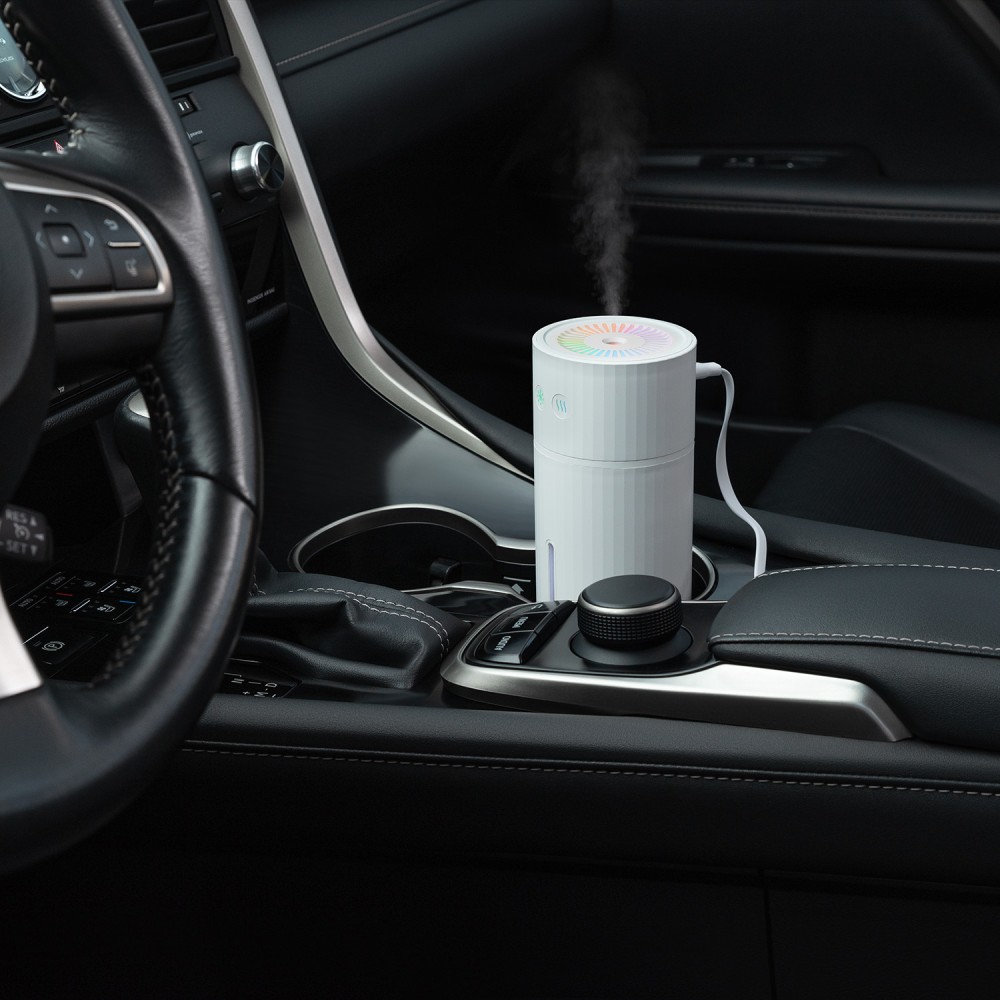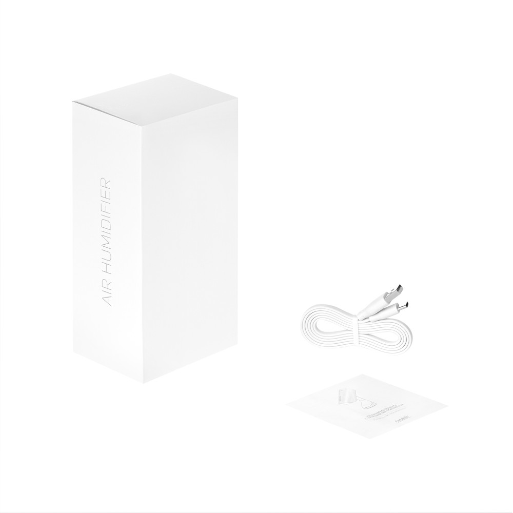 Портативный увлажнитель воздуха со встроенным аккумулятором 1000 mAh и функцией радужной LED-подсветки. Технология нано-распыления эффективно снижает сухость воздуха и электронное излучение, что устраняет статическое электричество. Конструкция с наклоном позволяет сделать поток воздуха направленным. Специальное покрытие корпуса OIL PAINT улучшает визуальные и тактильные характеристики изделий. Подходит для использования в автомобиле. Объем резервуара для воды -  260 мл.