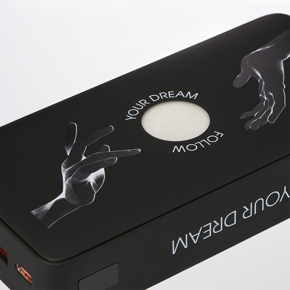 Проявите свою индивидуальность с помощью УФ-печати или гравировки. Увеличенная LED панель позволит создать уникальный аксессуар. Техническая информация вынесена на боковую грань.