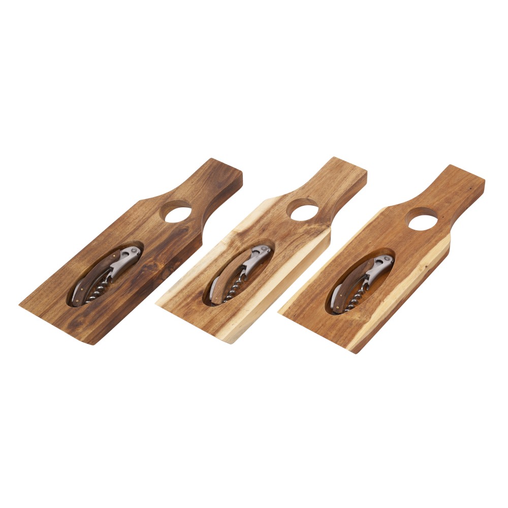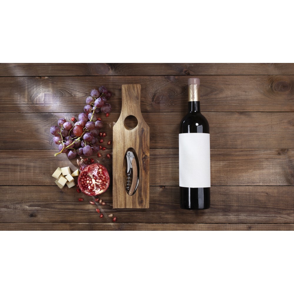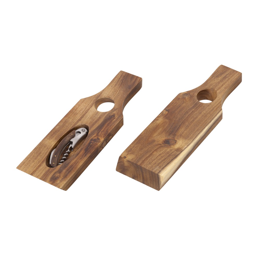 Эстетика невесомости «Wine board» производит впечатление. Практичность аксессуара в том, что в стойку для бутылки уже вложен классический штопор, а сама она может использоваться как доска для подачи закусок! Акация отличается красивым рисунком и насыщенным цветом, благодаря плотной структуре и обработке материала, поверхность устойчива к деформации и не впитывает влагу