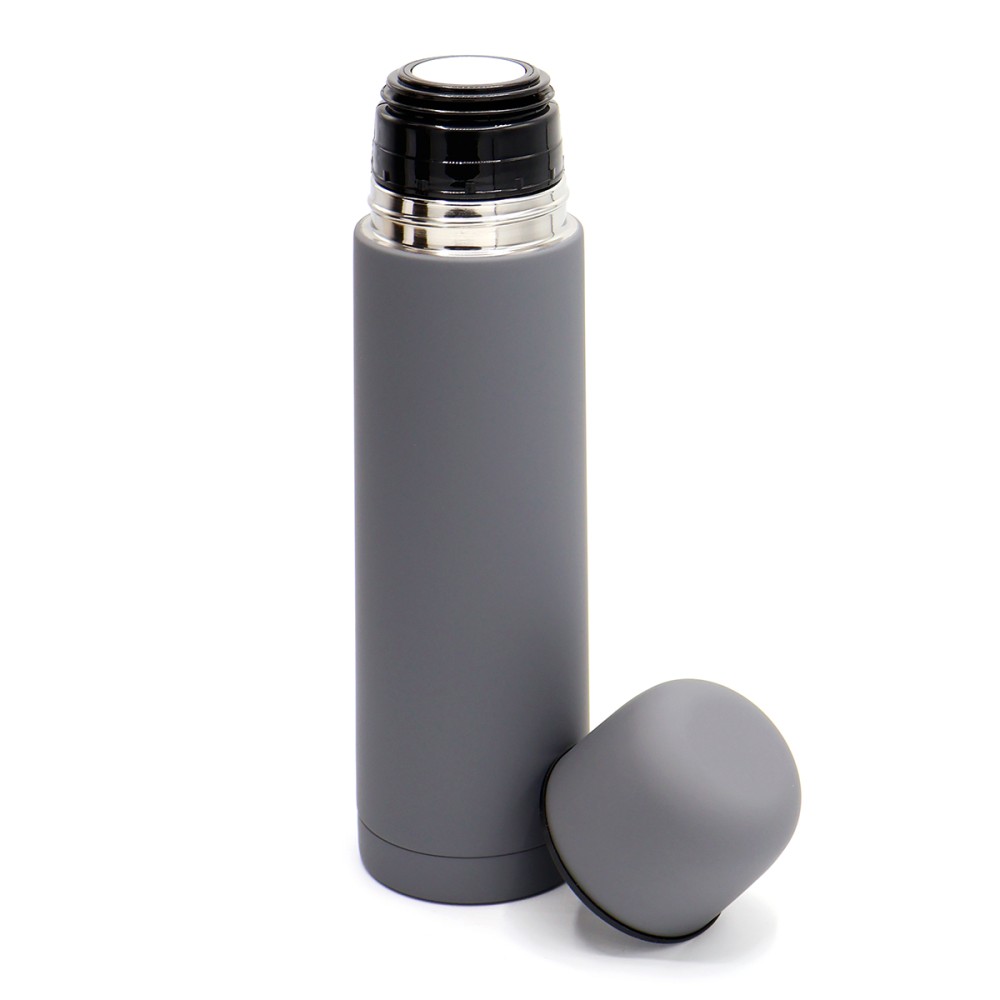Вакуумный термос с двойными стенками из нержавеющей стали марки 304 надолго сохранит температуру Вашего напитка. Небольшой объем позволит взять его с собой на прогулку или пикник.Термос с покрытием софт тач. Цвет, максимально близкий к пантону Cool Gray 10 C