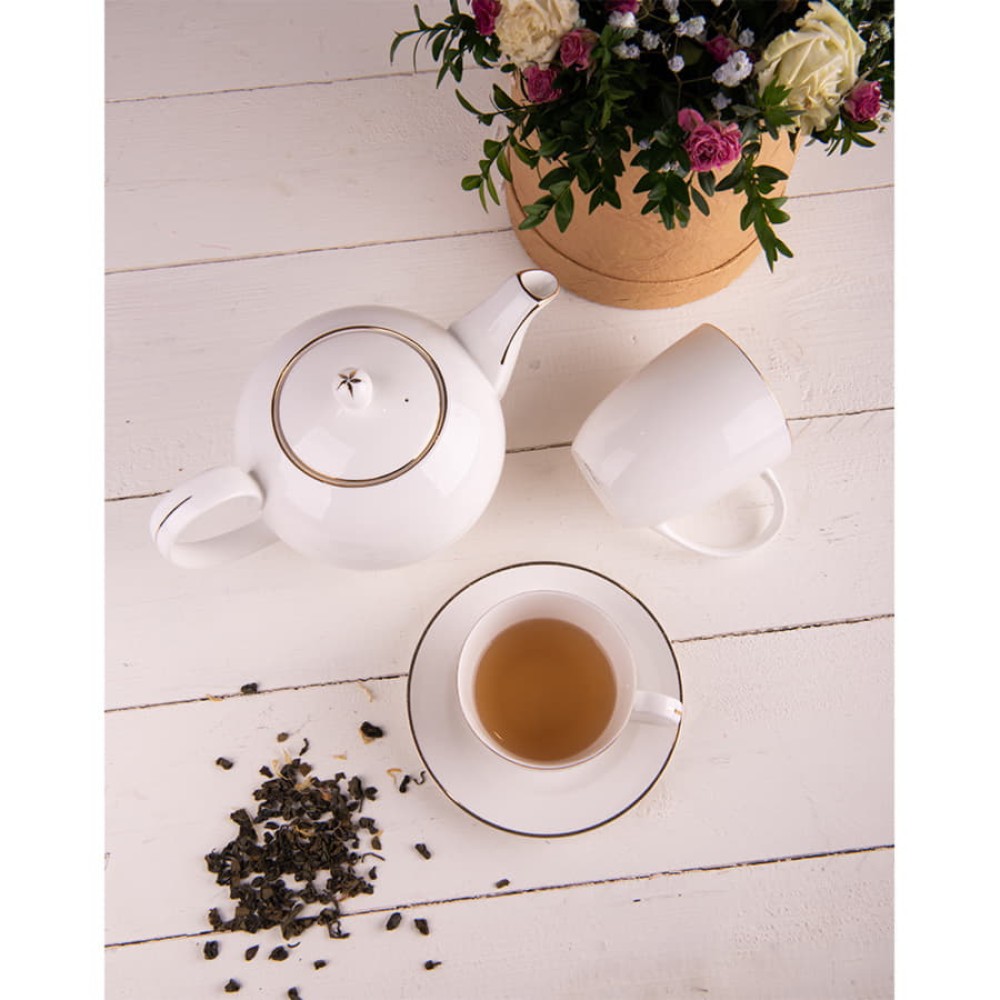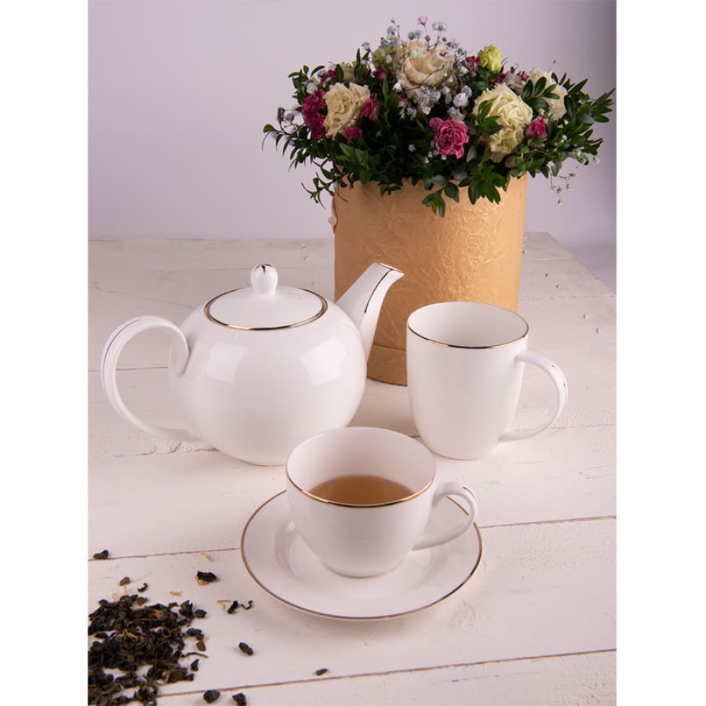 Чайник и две чайных пары GOLD в упаковке, 250мл и 1200мл, костяной фарфор