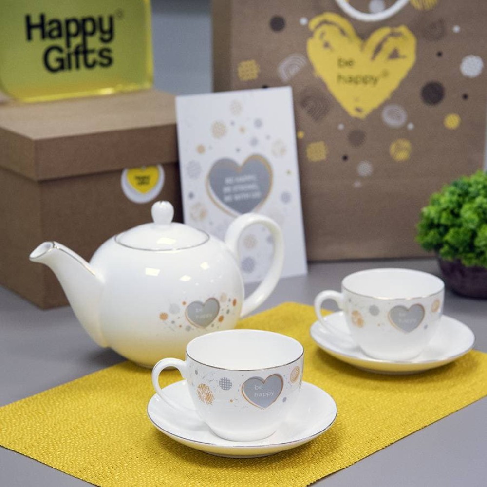 • Чайник и две чайных пары GOLD в упаковке, 250мл и 1200мл, костяной фарфор