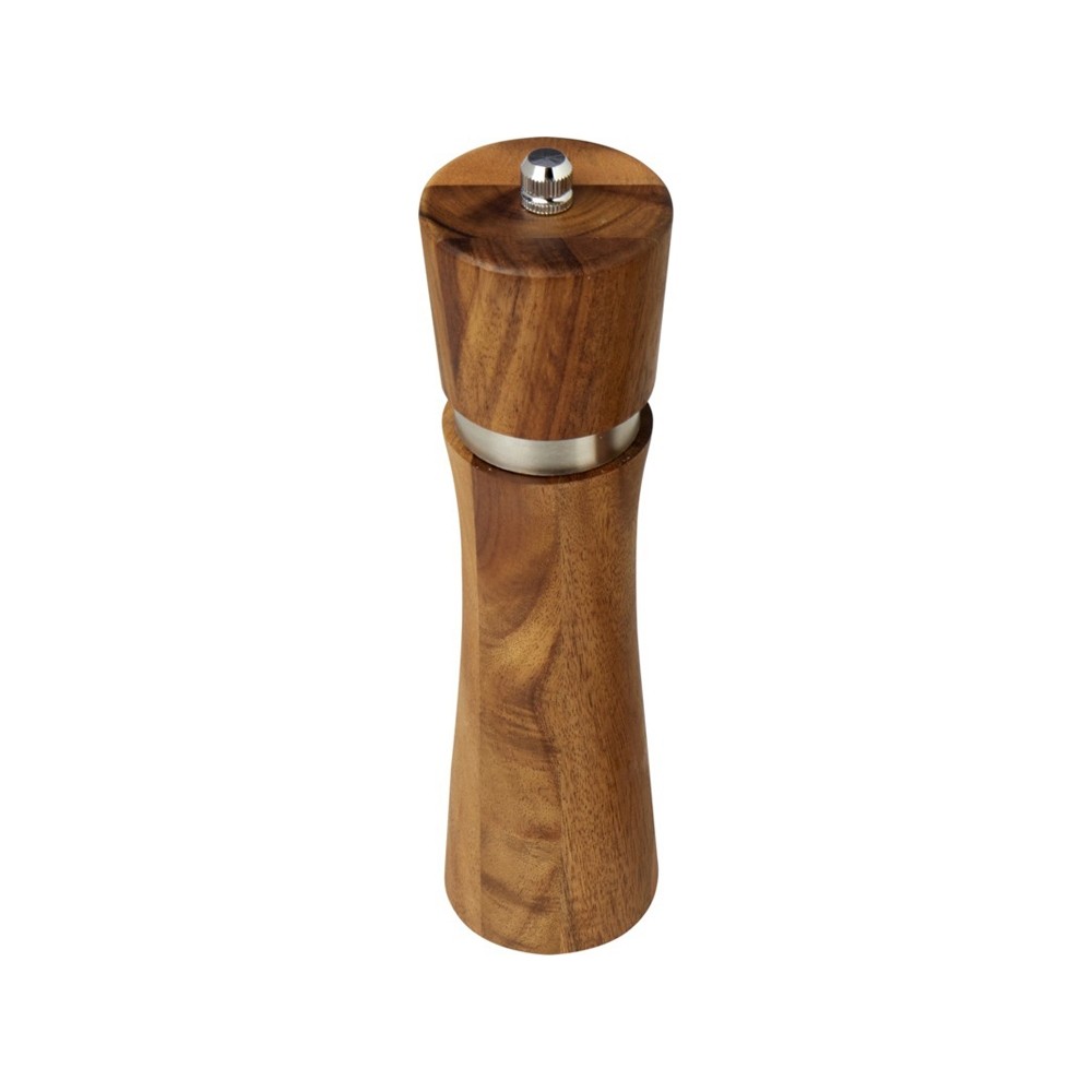 Мельница для соли и перца из древесины акации. Плавный поворотный механизм и корпус эргономичной формы обеспечивают комфортное перемалывание. FSC certified acacia wood.