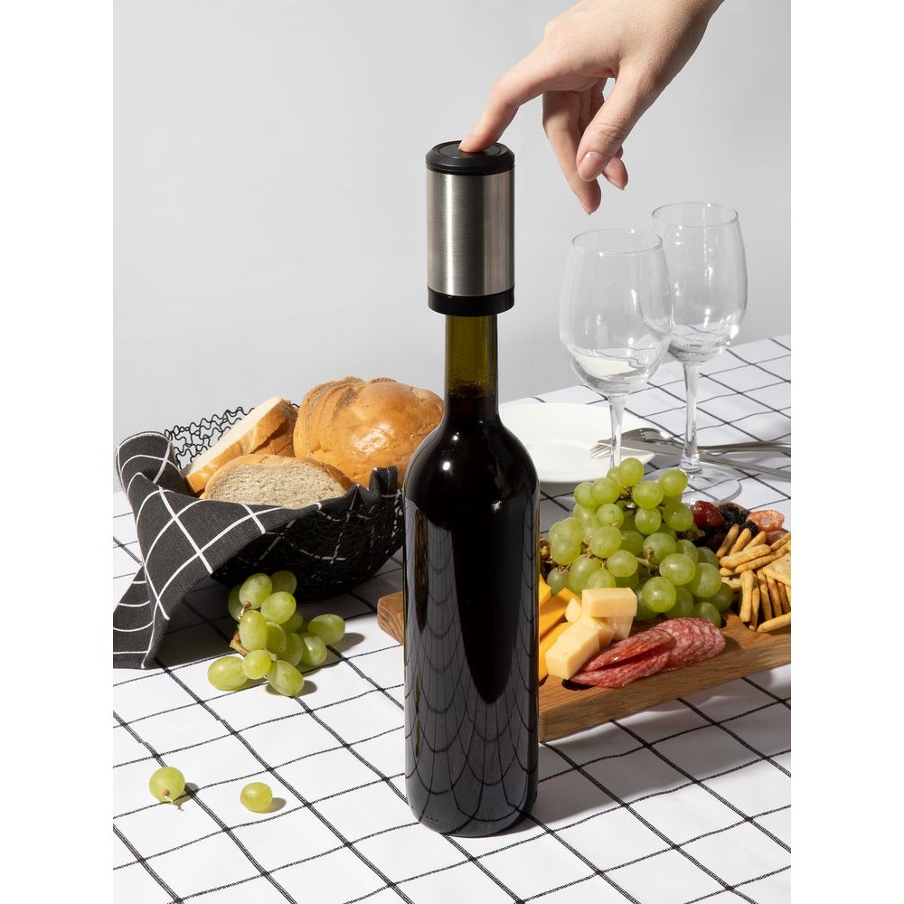 Электрическая пробка Tuoretta поможет одним нажатием кнопки удалить из бутылки весь воздух и сохранить напиток свежим до 7 дней. Внутренняя часть изготовлена из пищевого силикона и не добавляет никаких посторонних ароматов содержимому бутылки.