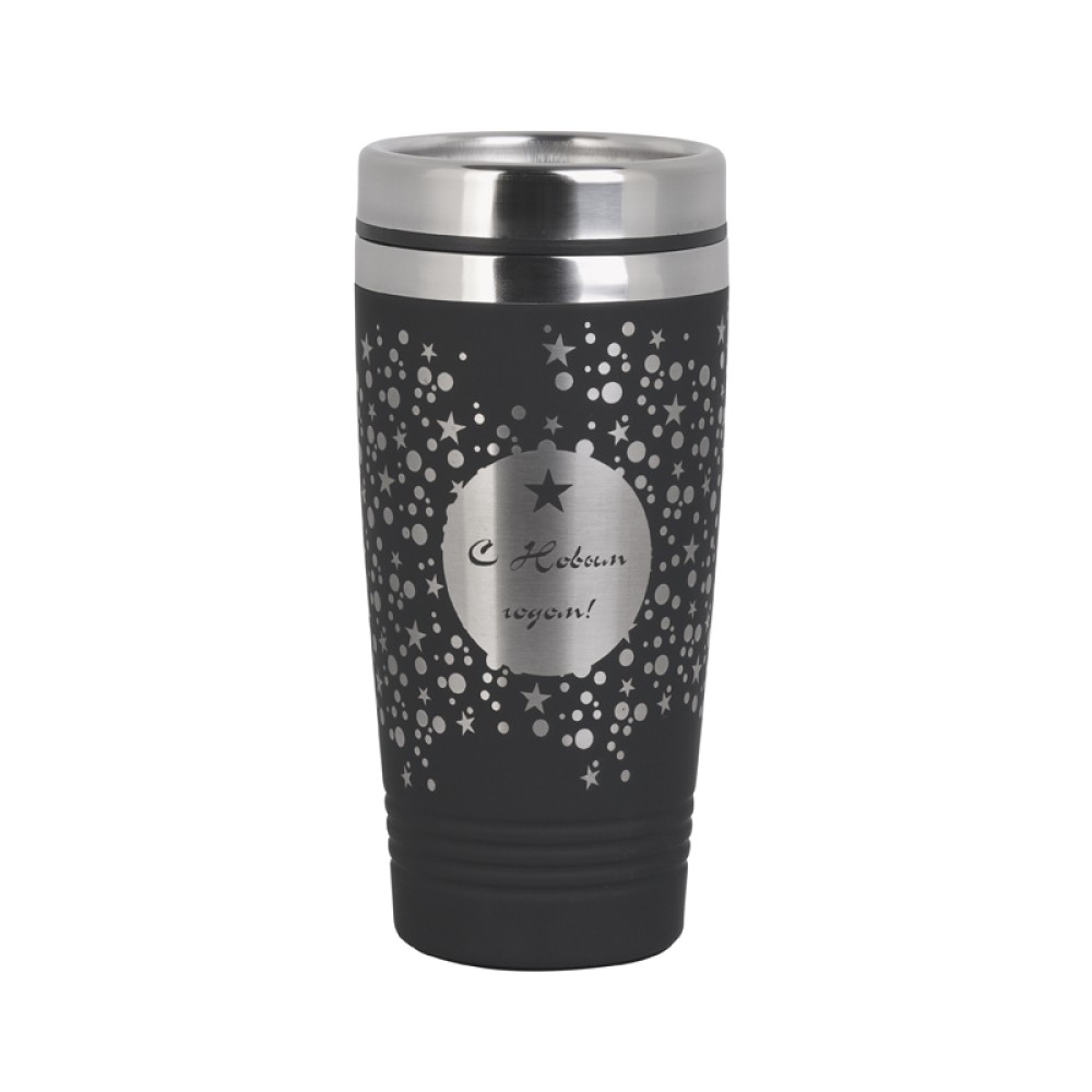 Термостакан "Азия" с прорезиненной поверхностью c гравировкой " С Новым Годом", синий